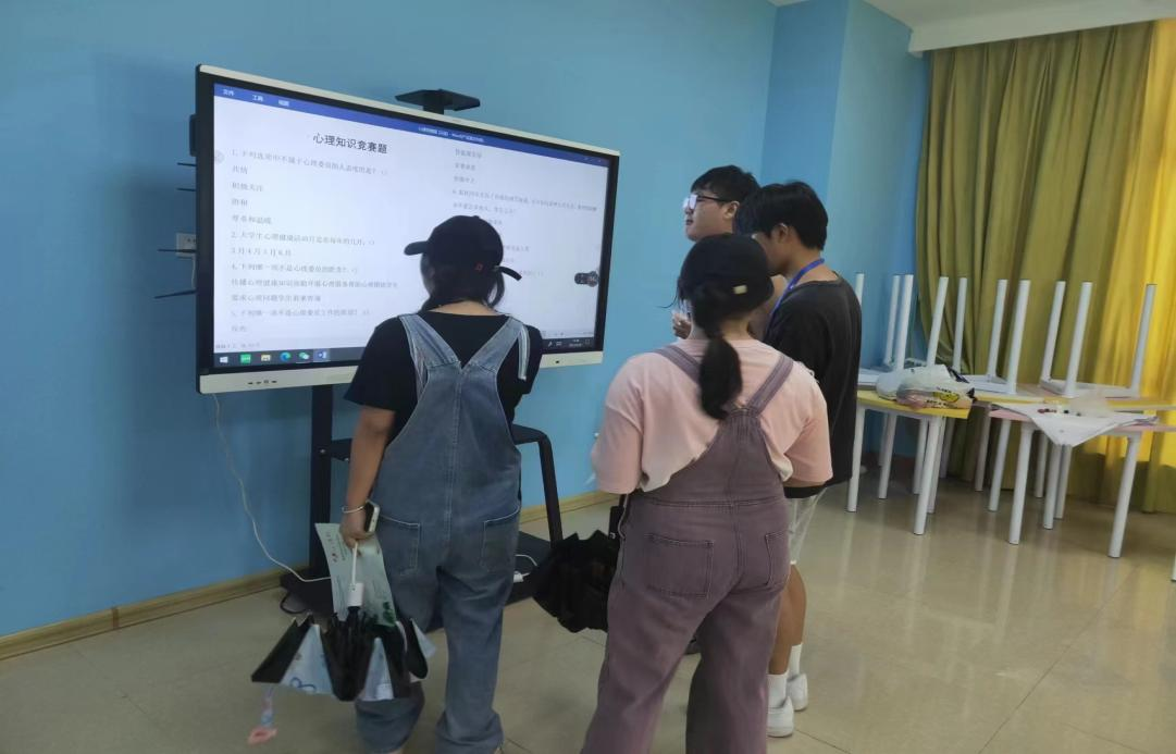 在工作人员带领下同学们来到了心理团辅室进行心理知识竞赛答题,活动过程中,同学们积极参与答题,此次活动,增强了同学们对心理健康知识的了解,也调动了他们对学习心理健康知识的积极性。