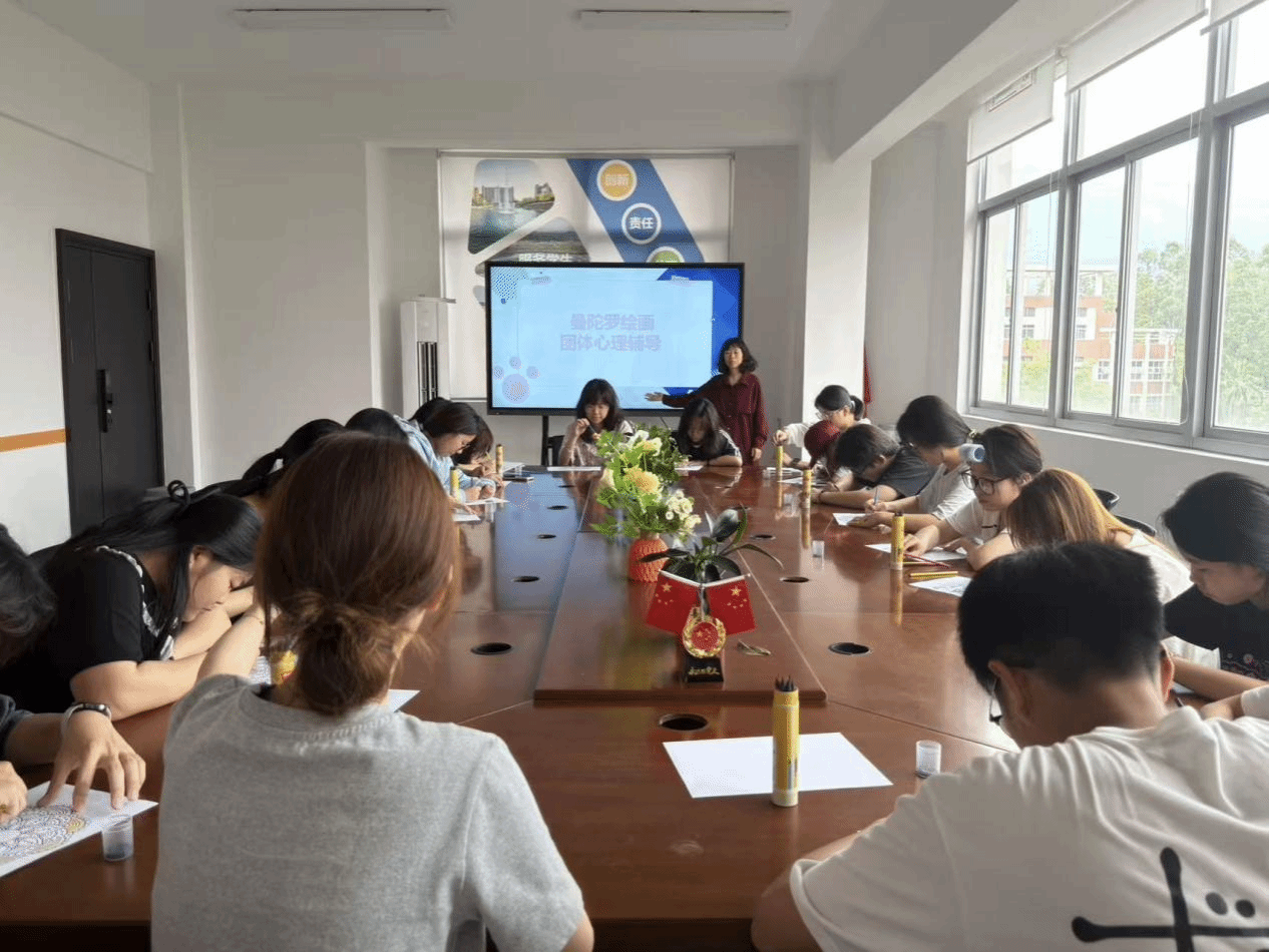 曼陀罗绘画作为表达性艺术疗法的重要载体,不仅是一种兼具审美价值与精神内涵的艺术表达形式,更是一种贴合学生成长需求、赋能心理育人的重要路径。为深入推进温暖集体建设,充分发挥心理疗愈在一站式学生社区“暖心育人”中的重要作用,2026年4月14日学生工作部联合建筑工程系和交通工程系在一站式学生社区易班工作站开展“曼陀罗绘画”团体心理辅导,本次活动由专职心理老师连双玲带领,建筑工程系和交通工程系20位同学积极参与。