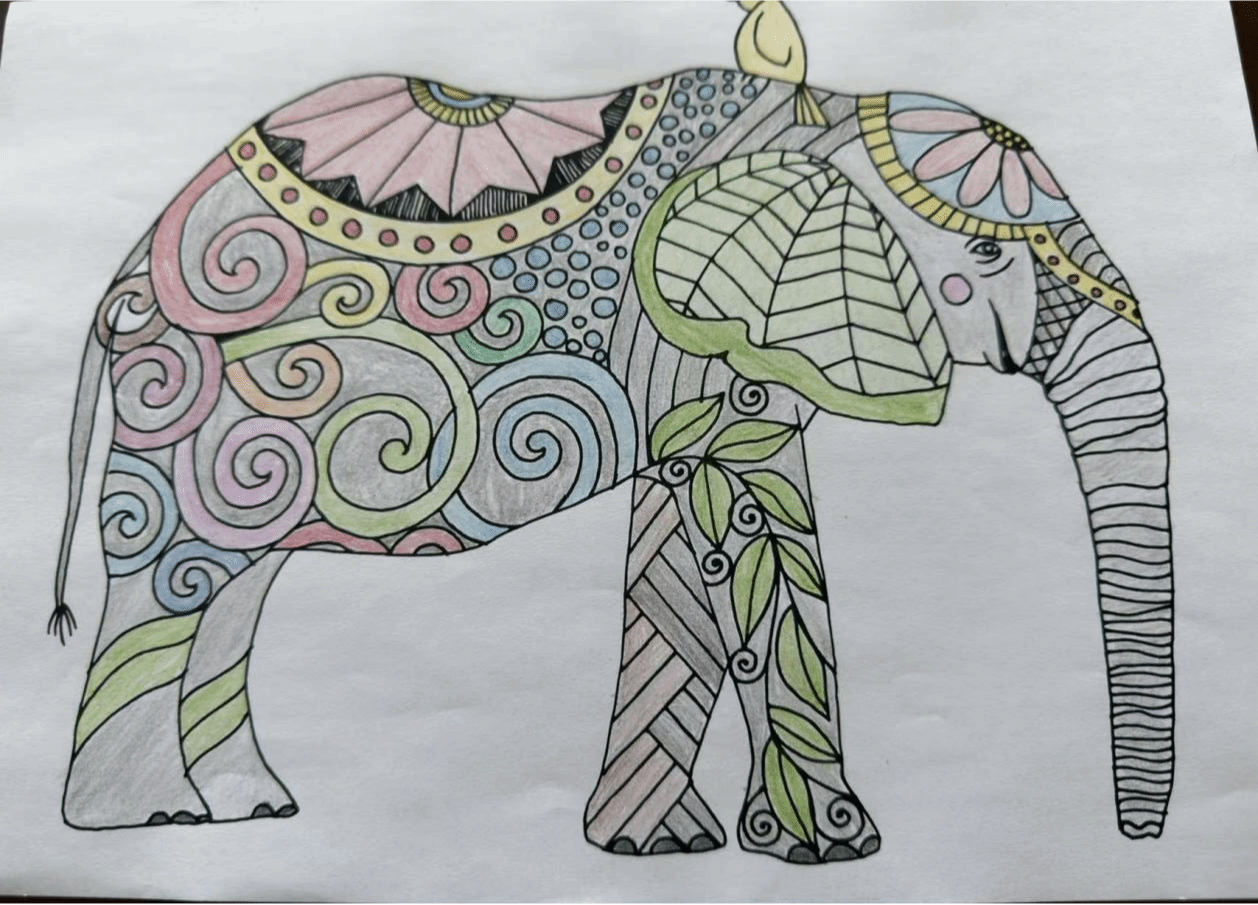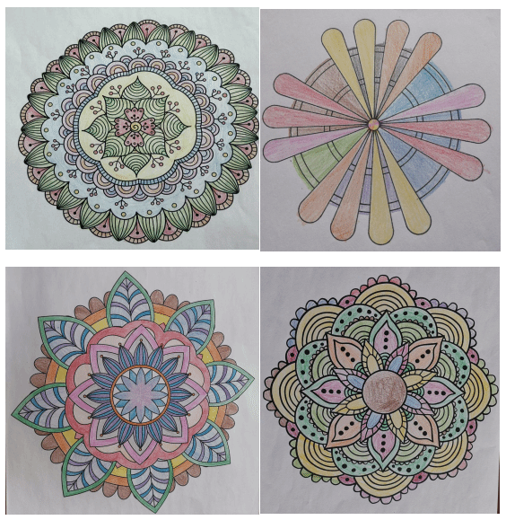 本次活动轻松有趣,在老师的引导下,同学们在曼陀罗图案的画纸上进行填色,意在正念静心。通过色彩和绘画,让同学们在心灵、情感上对负能量进行释放,在一笔一划中与自己连接,起到解压疗愈的作用。