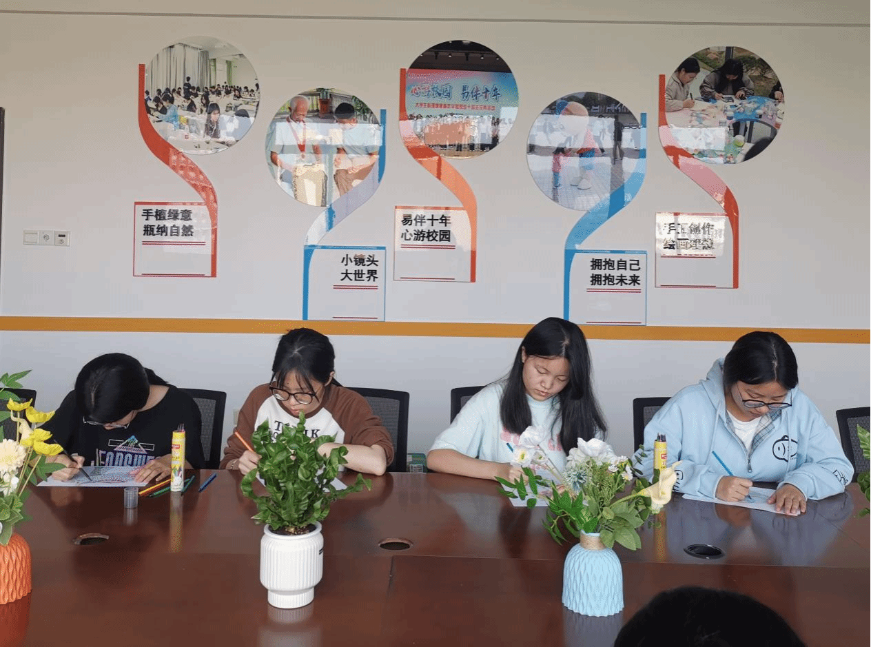 伴随着舒缓的音乐,同学们专注当下,投入到曼陀罗绘画中。