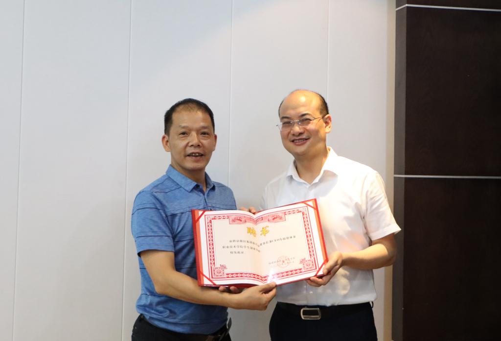 随后,万泉书记为廖杰远校友颁发福建林业职业技术学院客座教授聘书;刘文开院长为廖杰远校友颁发福建林业职业技术学院创业导师聘书。