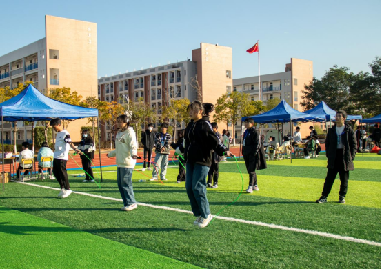此次活动共设有六人七足、飞花令、套娃、背对背运球、双人踢毽子、花样跳绳、定点投篮等七个运动区域。