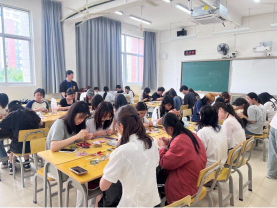 活动现场同学们积极参与,充满青春气息与文化韵味。工作人员深入讲解了端午节的历史渊源、民俗活动,还结合香囊制作工艺,探讨了传统手工艺在现代社会的传承与创新。香囊制作实践环节正式开始后同学们分组协作,设计出新颖的香囊造型,感受着中国传统文化的魅力。经过近三个小时的精心制作,一个个精美的香囊呈现在众人眼前。