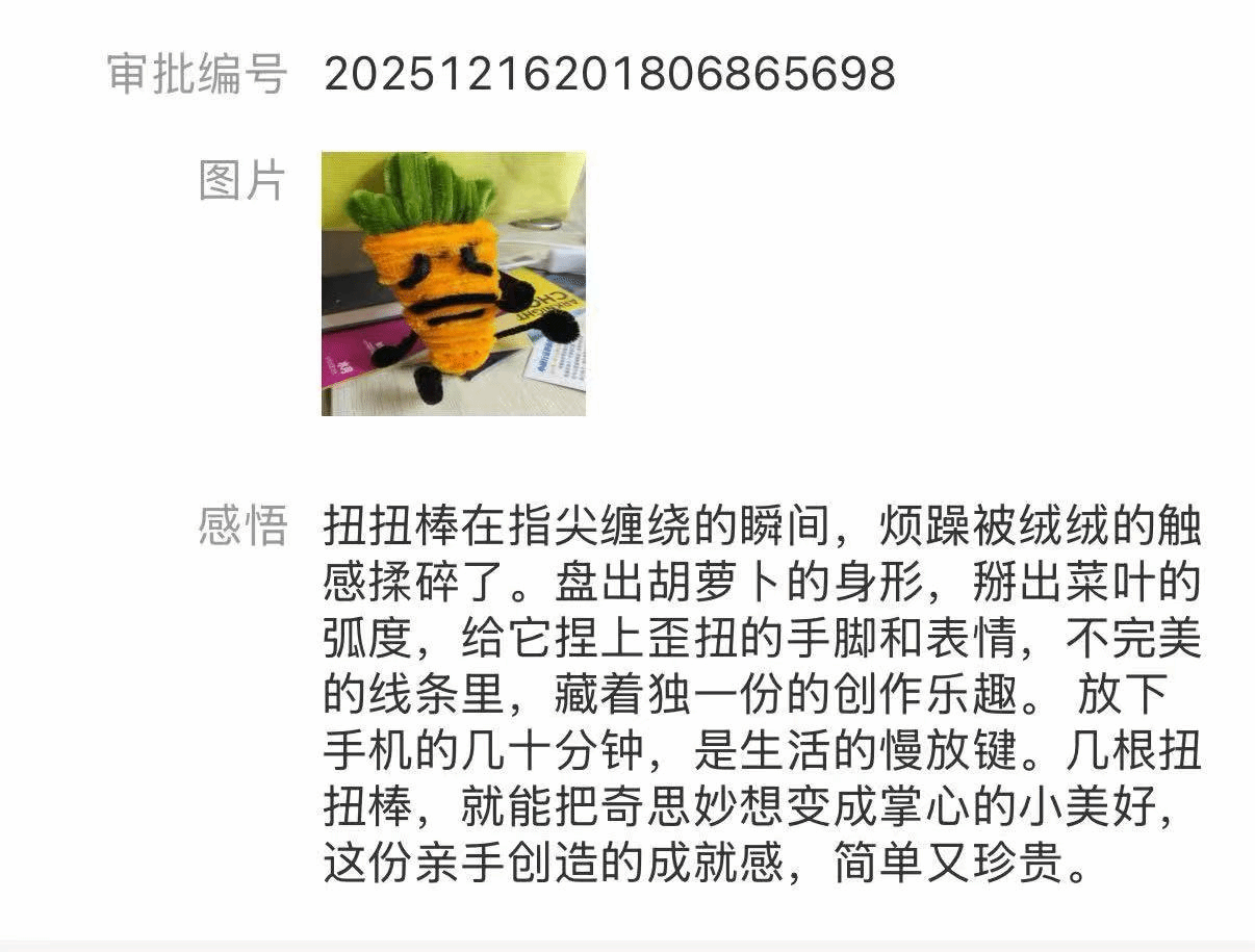 这场集趣味性与实用性于一体的手工活动,不仅是传统手工艺的一次校园传承,更是同学们展现创意、提升动手能力与审美素养的优质平台。在专注创作的过程中,大家既能缓解学业压力,感受手工带来的疗愈力量,也能通过作品表达情感与想法,在互动交流中拓宽视野、增进友谊。让我们以扭扭棒为媒,在指尖流转创意,在协作中分享快乐,共同营造积极向上、多元包容的校园氛围,留下一段充满温度的校园回忆!