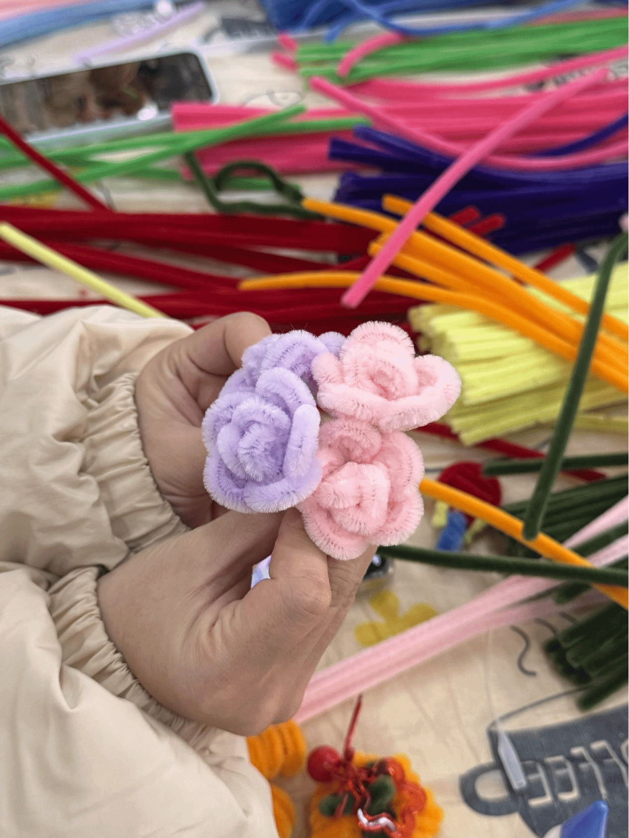 本次活动凭借灵活有趣的创作形式收获超高关注度。通过广播台、班长群、易班推文宣传及食堂与宿舍楼门口的海报展示,同学们参与热情高涨,大家纷纷用色彩鲜活的扭扭棒,解锁自己专属的创意作品。