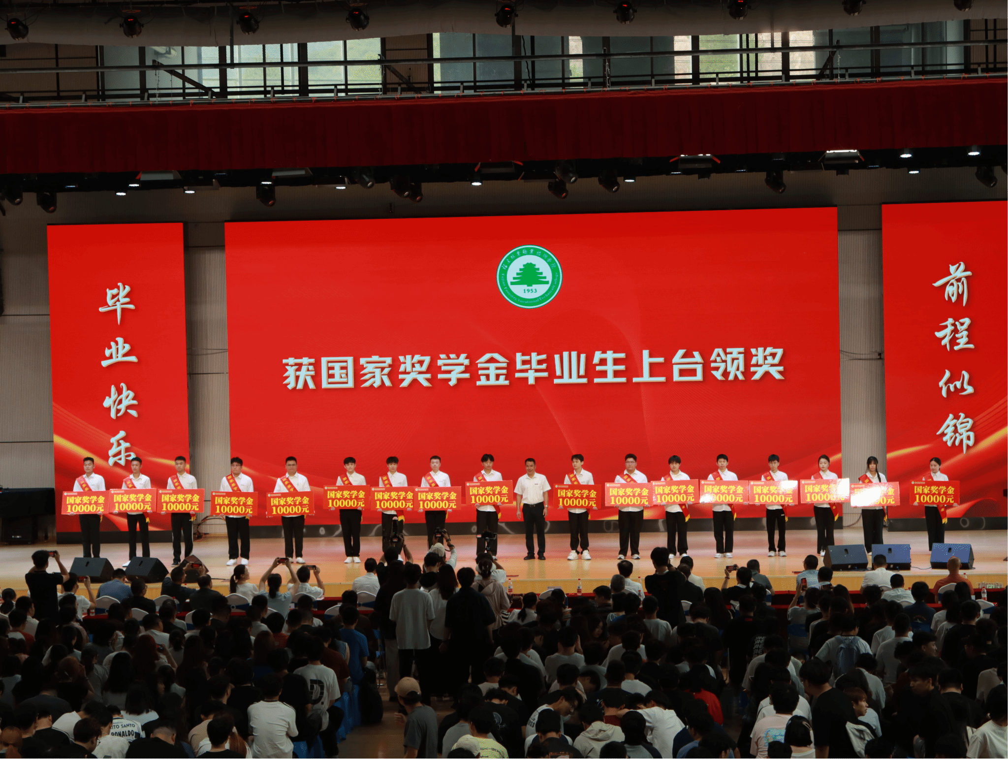 2025年6月18日上午,福建林业职业技术学院在江南校区体育馆举行了2025届毕业生毕业典礼。典礼由院党委副书记严绍裕主持,会上宣读表彰了我院2024年34位国家奖学金获得者,由院党委书记陈建辉为获奖学生颁奖。