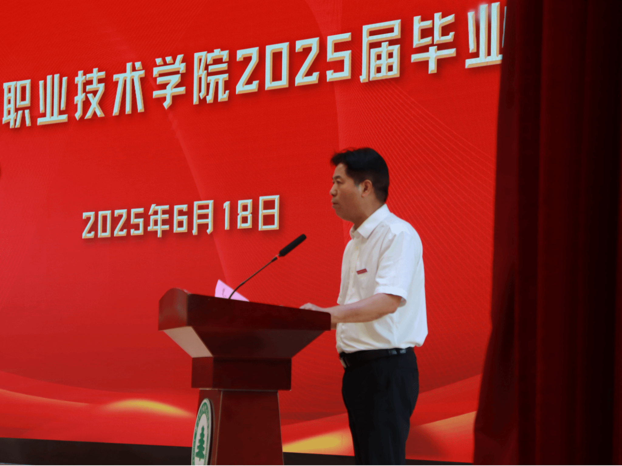 2025年6月18日上午,福建林业职业技术学院在江南校区体育馆举行了2025届毕业生毕业典礼。典礼由院党委副书记严绍裕主持,会上宣读表彰了我院2024年34位国家奖学金获得者,由院党委书记陈建辉为获奖学生颁奖。