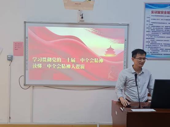 2024年10月15日,经济管理系在经管楼701室举办党的二十届三中全会精神专题宣讲会。宣讲会由学生工作部部长、党支部书记陈友益主讲,联系班级现代物流2301班全体同学聆听了此次讲座。