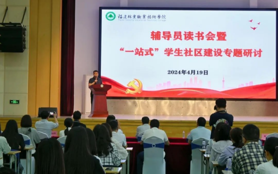为加强学院学生工作队伍建设,推进“一站式”学生社区管理服务提质增效,2024年4月19日,由经济管理系承办的辅导员读书会暨“一站式”学生社区建设专题研讨在天麟校区礼堂举行。院党委副书记严绍裕,院学生工作部部长陈友益,院安全保卫处处长胡宗焕,院团委副书记(主持工作)雷栩艺,经济管理系主任林文胜,经济管理系党总支副书记(主持工作)王昉,院学生工作部副部长陈红英,各系学生科长及全体专职辅导员80余人参加了读书会。本次读书会由经济管理系专职组织员张翼翔主持。