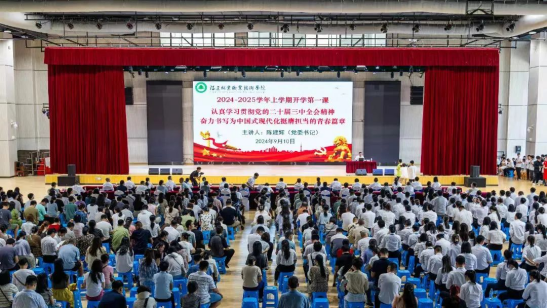 9月10日下午,学院“开学第一课”特邀全省教育系统学习宣传贯彻党的二十届三中全会精神“百人宣讲团”成员、我院党委书记陈建辉为学院师生作党的二十届三中全会精神宣讲报告。学院副院长黄晖主持会议。