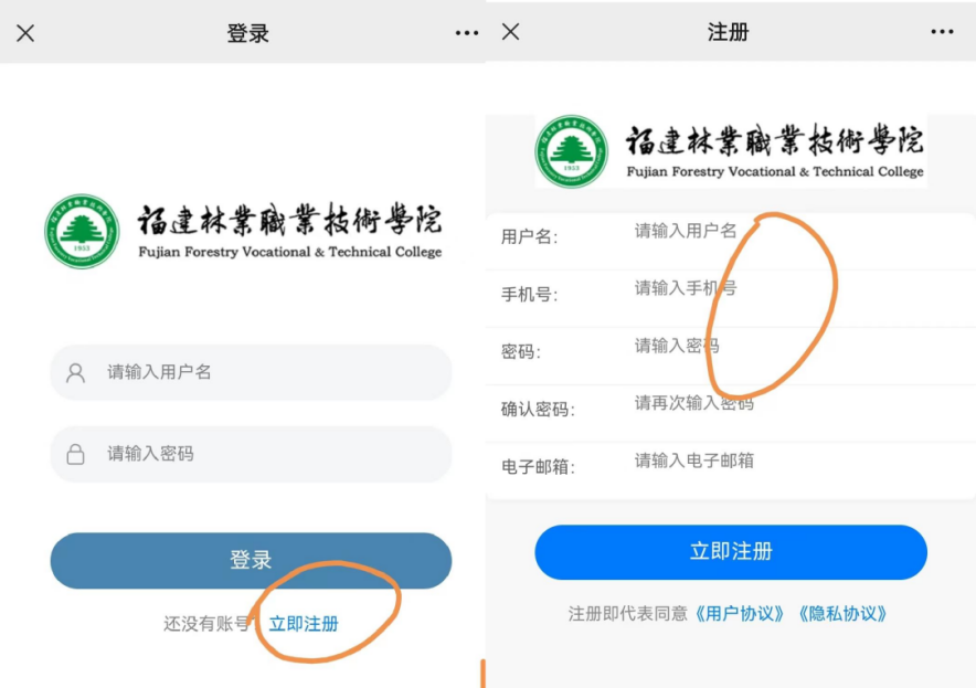 2023年 6 月之前已经毕业的所有校友的姓名班级全部已经预录到了系统中,用户名就是 姓名,密码是姓名首拼+123456。
