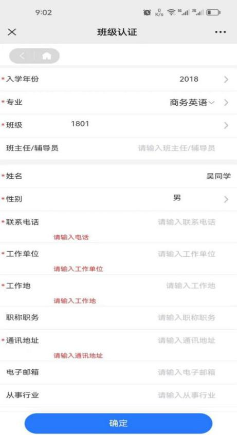 注册好后,用刚刚注册的姓名和密码登录,点“首页”下方“开始班级认证”或者点“我的”>“个人资料” 里面完善个人的信息, 先填写入学年份 ,当年的所开专业和班级已经录入到系统中了,同学只需选择好就可以了。然后完善姓名、性别、联系电话、工作单位、工作地、通讯地址、从事行业、取得成绩等个人信息。在完善信息后,可以在首页下方“进入班级主页”就可以查看本班同学和上传班级活动照片了。