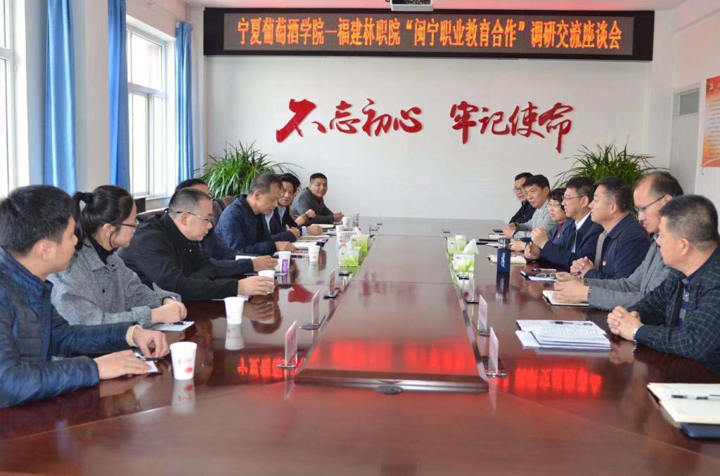 为了进一步落实《福建林业职业技术学院与宁夏葡萄酒与防沙治沙职业技术学院结对帮扶框架协议》,根据双方合作内容安排,我院刘文开院长率罗立仪副院长、纪委林建斌书记及相关部门负责人和教师代表等一行12人于2019年10月16日至19日到宁夏葡萄酒与防沙治沙职业技术学院(以下简称“宁职院”)开展结对帮扶活动。