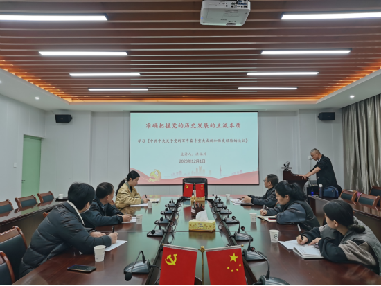 2023年12月1日,学院退休返聘教师洪福兴研究员为党政办公室党支部成员上了一堂主题为“准确把握党的历史发展的主流本质——学习《中共中央关于党的百年奋斗重大成就和历史经验的决议》”的专题党课。
