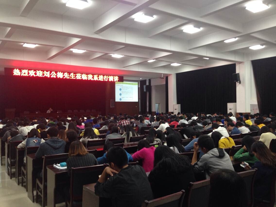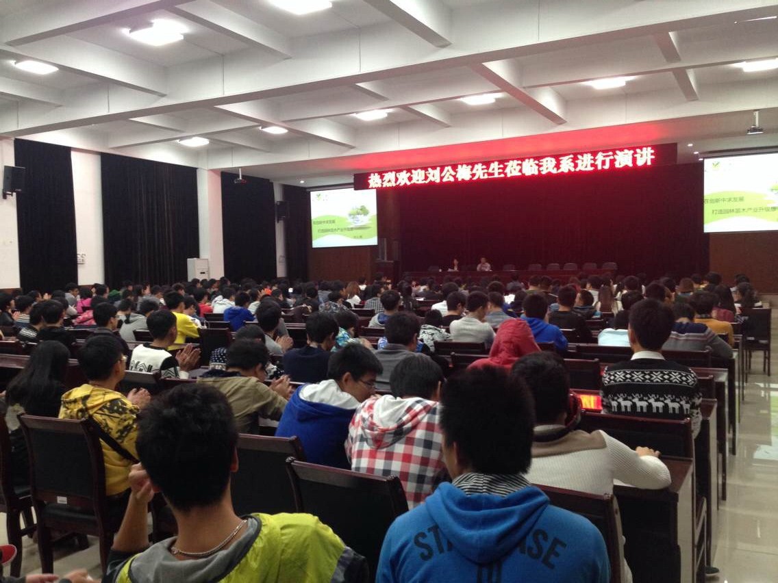 晚上19点30分,园林系在学院江南校区四楼礼堂举行了一场关于园林行业动态的专题讲座,邀请了南平市绿友园林绿化公司董事长刘公梅先生做专题报告,园林系所有大一、大二(含五年专和本科班)学生到场聆听了讲座。刘董事长以“在创新中求发展,打造园林苗木产业升级版”为主题,结合自身的创业经历,与园林系所有的学生共同品味园林给社会、给生活带来的美的享受。