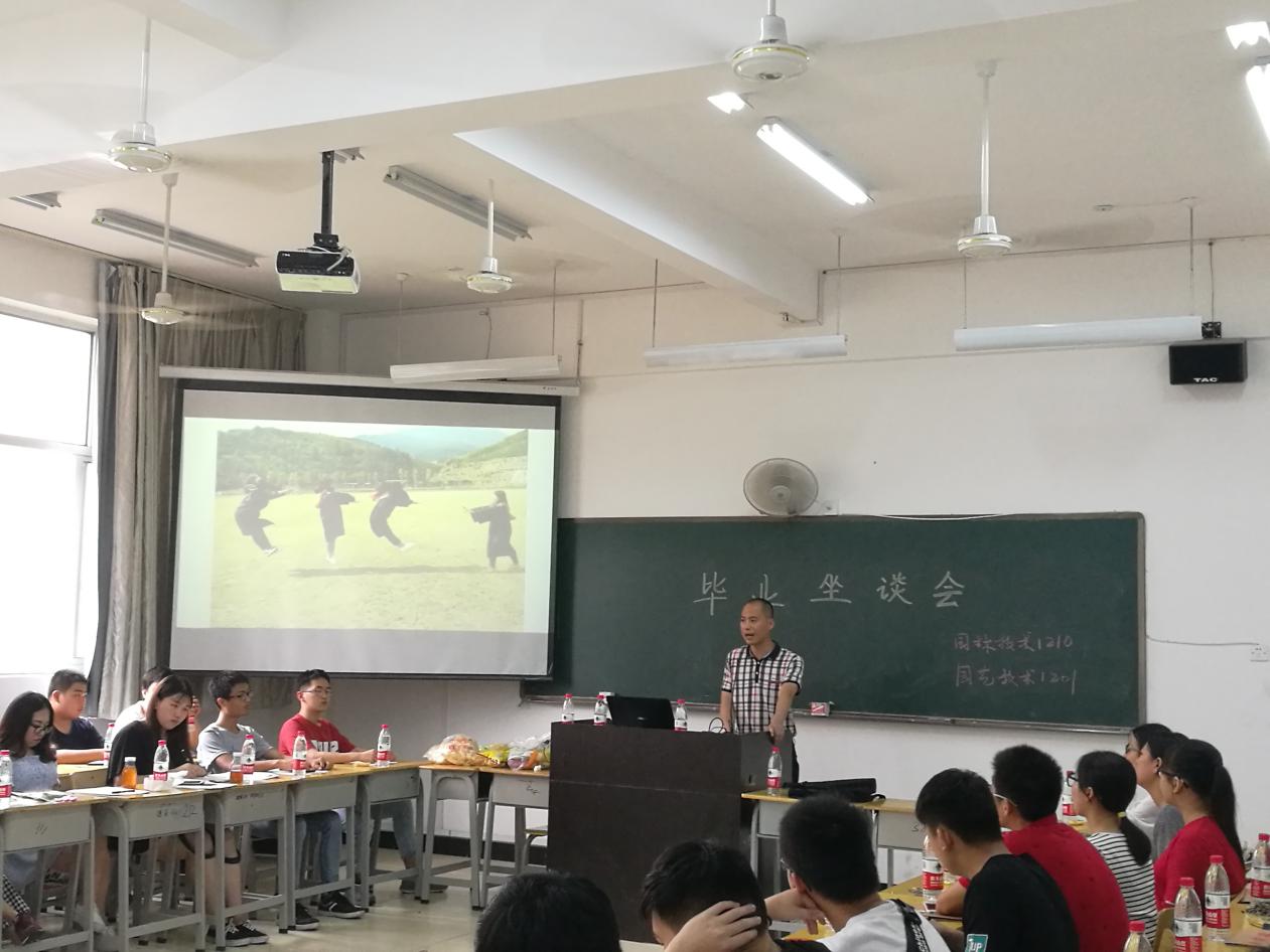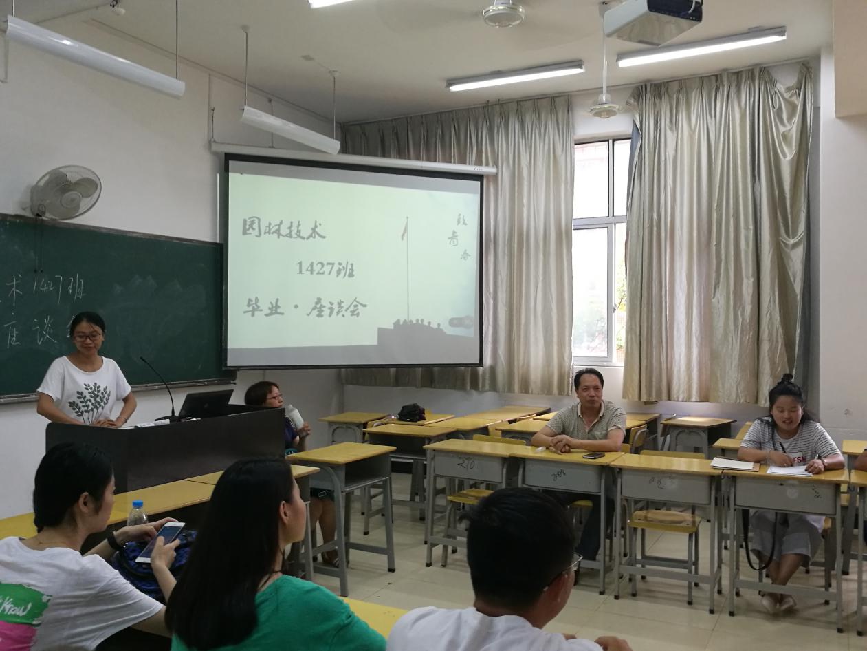 为加强毕业生之间的学习交流,收集毕业生顶岗实习返校的意见,2017年6月13日下午,园林系在实训四教室召开毕业班座谈会。园林系主任黄勤坚老师、园林系副主任黄云玲老师、园林系学生党支部书记陈剑勇老师以及园林系其他专兼职教师参加了座谈会。