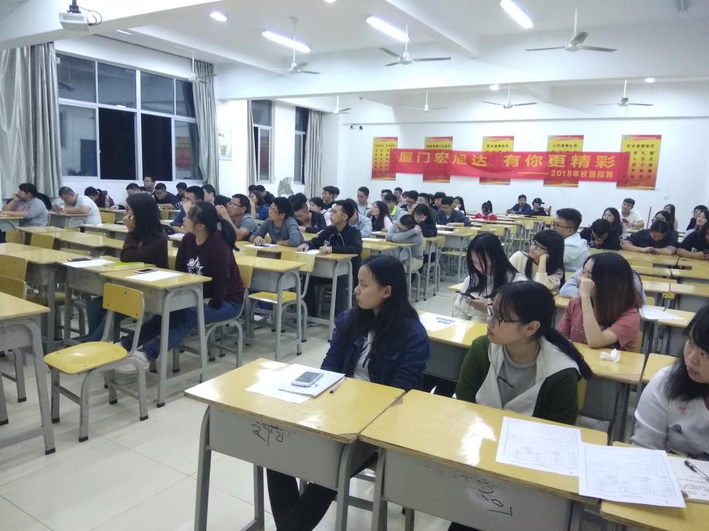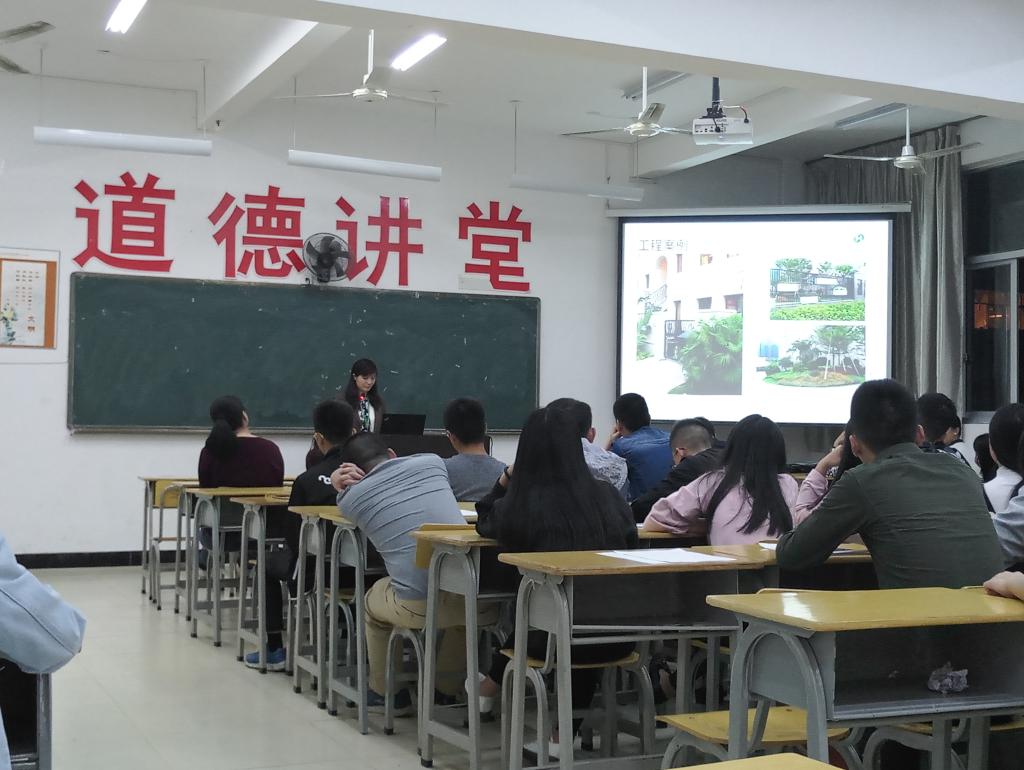 为了帮助毕业班同学了解就业形势,增加就业信息指导。园林系于11月9日19:00在实训四310举行厦门宏旭达园林工程有限公司现场招聘会。此次招聘会主讲人为宏旭达公司行政经理范小燕,参加此次招聘会的还有正在此公司实习的陈晓恩学长。