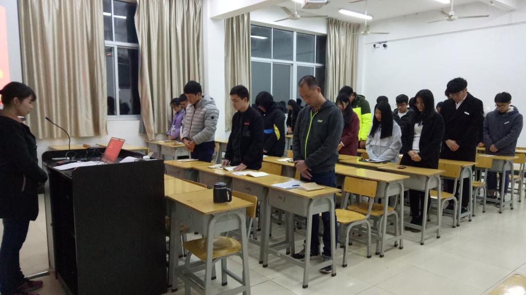 12月13日是“南京大屠杀”的国家公祭日,活动伊始,由孙钰老师主持缅怀在南京大屠杀中遇害的30多万同胞,全体参加活动人员起立默哀三分钟。