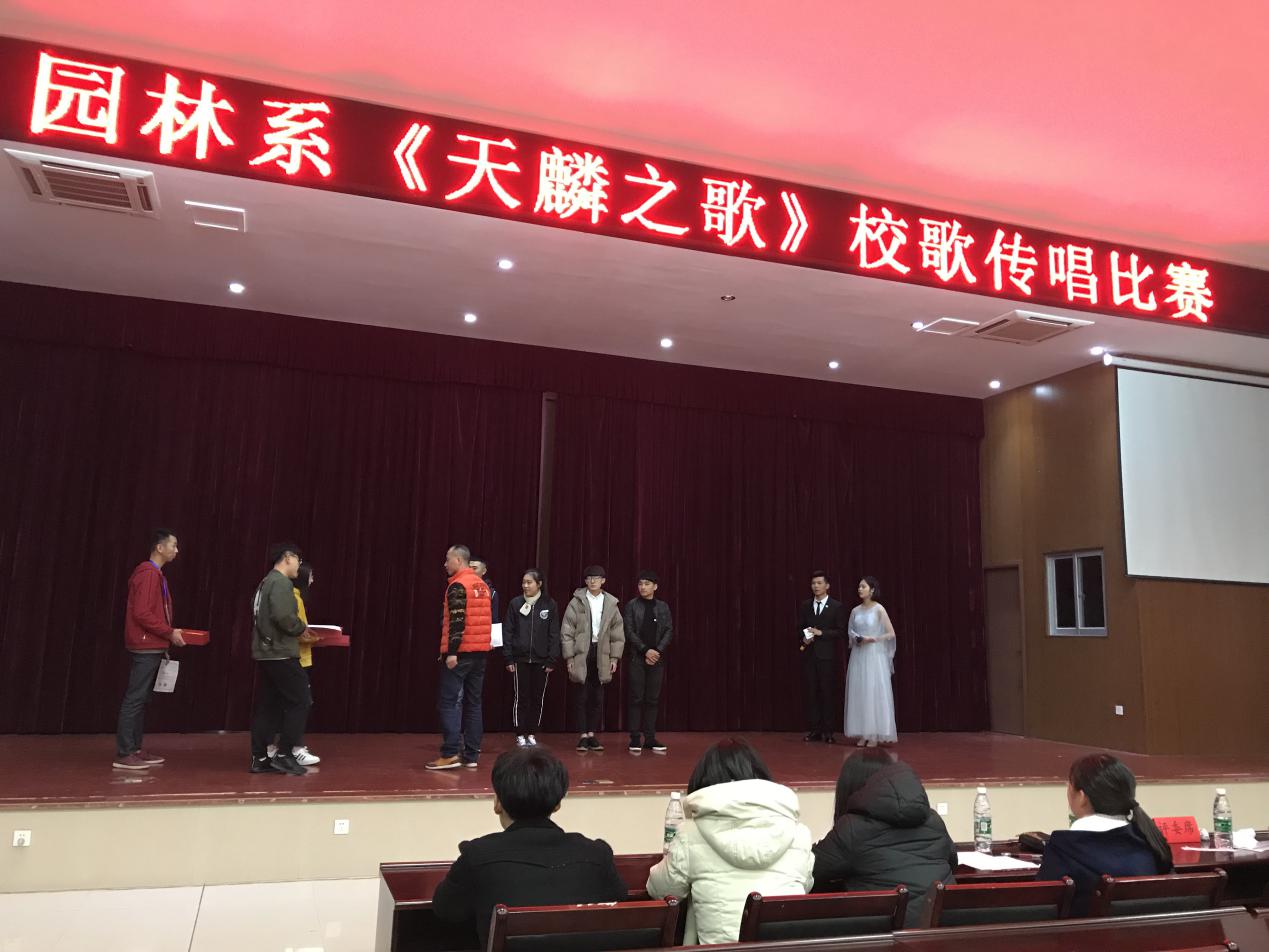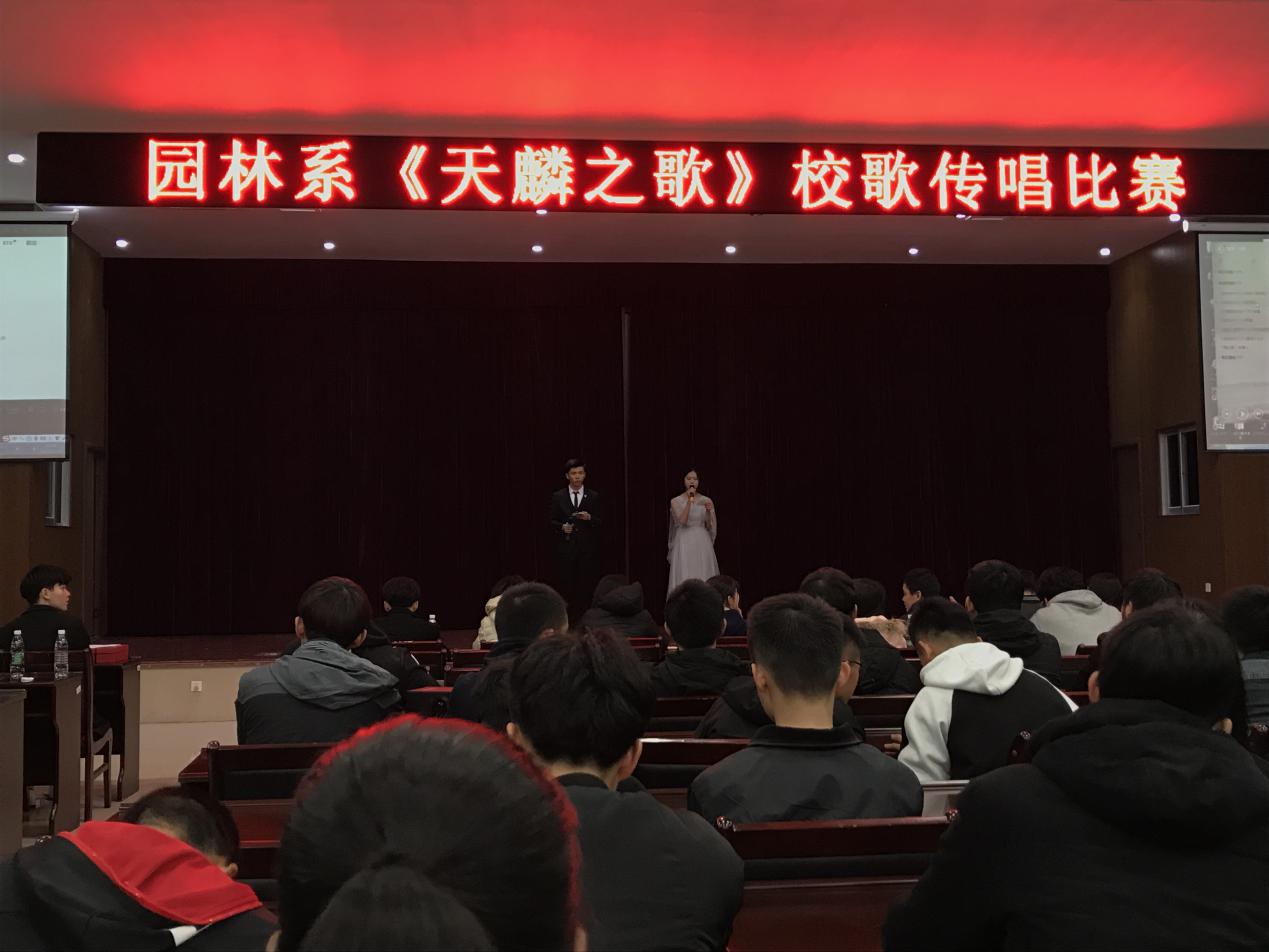 2017年12月20日晚上7点30分,由园林系两委会主办、园林系文体部承办的园林系《天麟之歌》传唱比赛于江南校区礼堂隆重举行。比赛邀请到陈剑勇书记、陈剑峰老师、陈宜老师、吴锦鸿老师、孙钰老师、李志锋老师以及两位园林系两委会主席团成员作为评委。