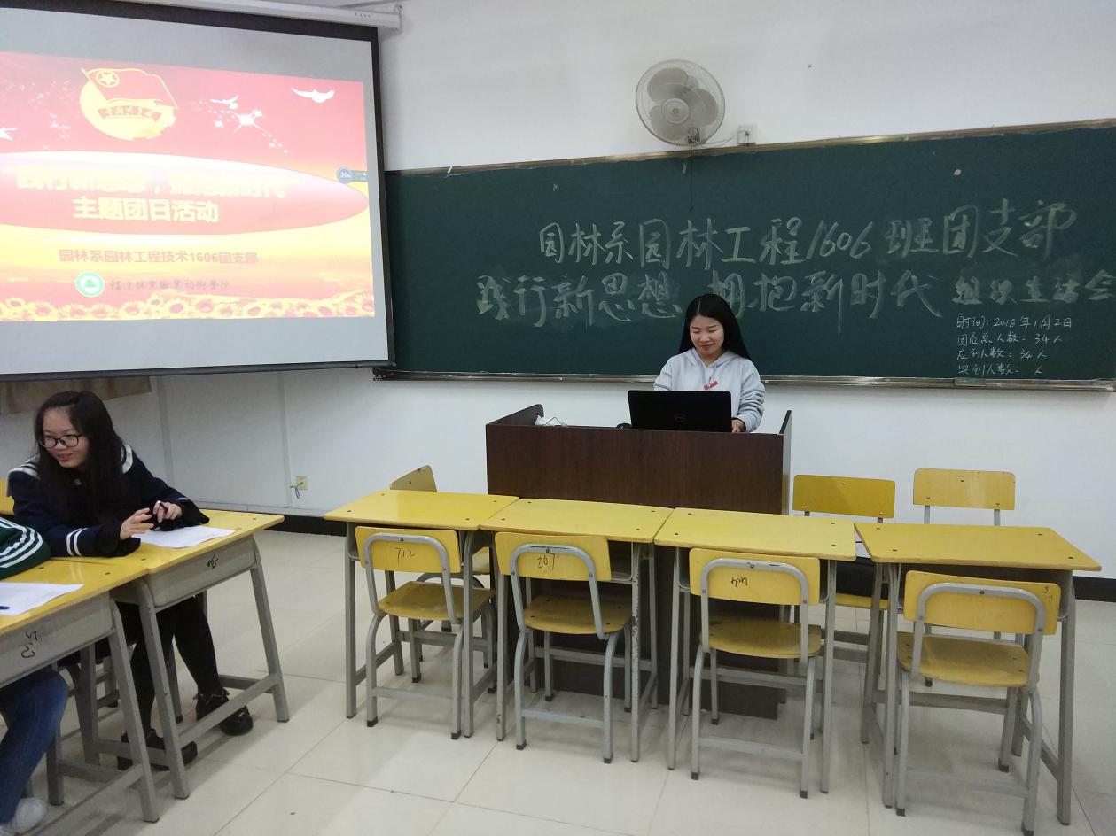 2018年1月2日晚上七点半,园林系各团支部在江南校区实训四教室开展以“践行新思想 拥抱新时代”为主题的组织生活会,会议由各班团支书主持,各班团员都积极参加了此次会议。