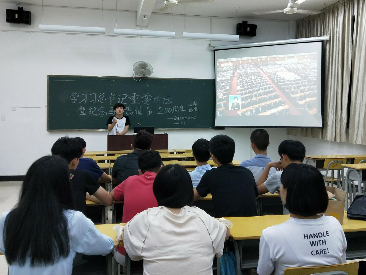 2018年5月7日晚上,园林系两委会于实训四六楼教室组织全体同学开展“学习习近平总书记在北京大学师生座谈会上的重要讲话暨学习习近平总书记在纪念马克思诞辰200周年大会上的重要讲话”主题教育。