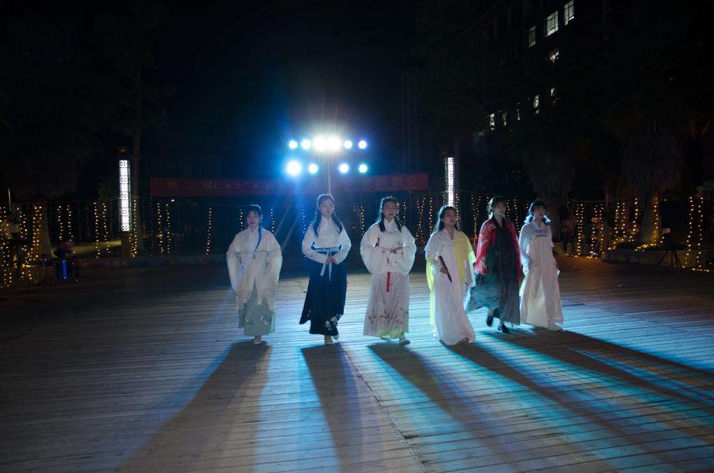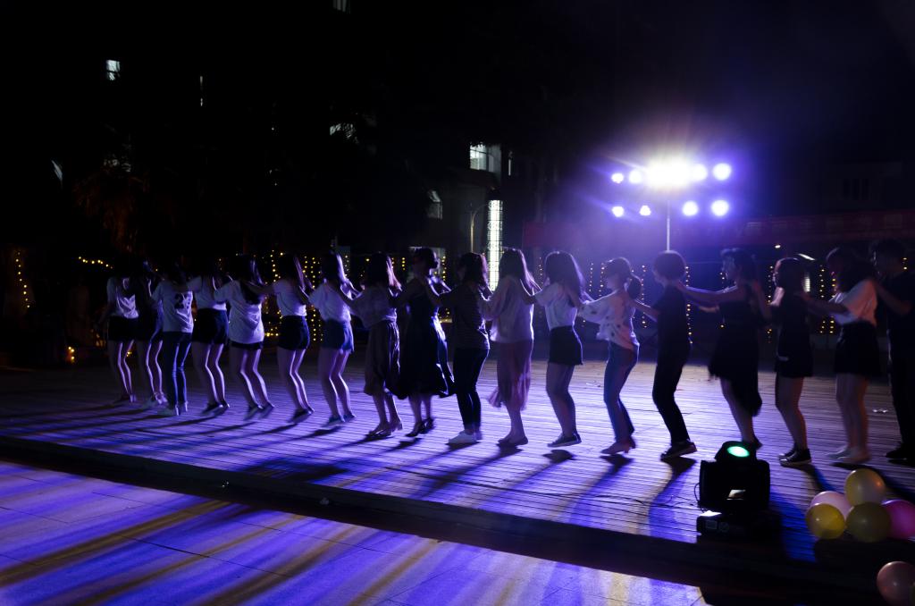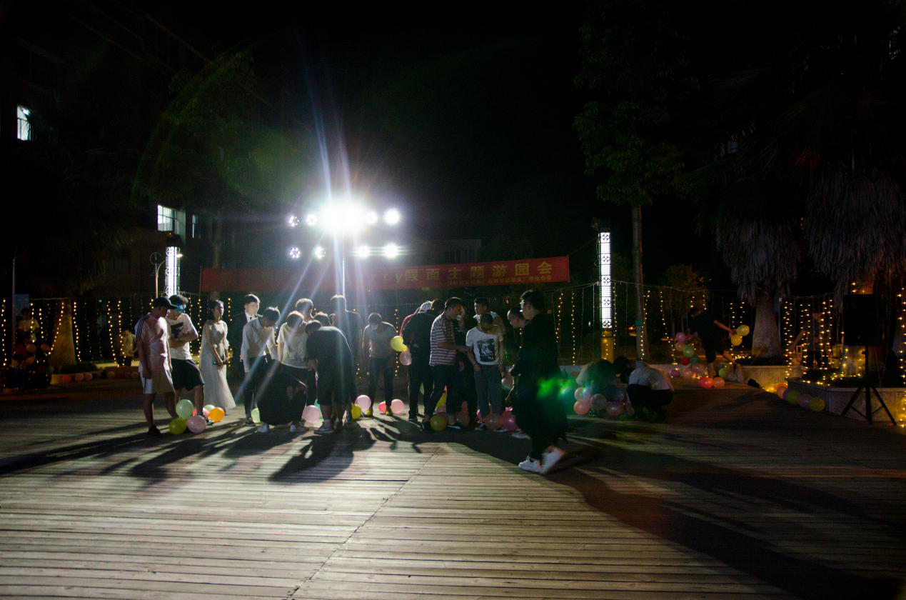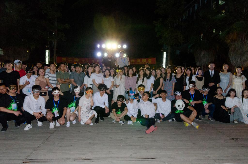 活动开始前,工作人员在现场紧张布置、调试设备,而先行到场的同学则签到领取了面具,兴奋地等待舞会的开始。19点30分,在主持人宣布下,拉开了华丽舞台的序幕。首先,由B-box协会进行开场表演,将现场的气氛瞬间点燃。紧接着的歌舞表演和汉服展示,又进一步推动了气氛。在舞会过程中穿插的游戏环节引起同学们的阵阵助威声与欢笑声。伴随着表演将气氛推向高潮,舞会过程中也迎来了最激动人心的抽奖环节,园林系团委副书记陈凡和主席团主席唐志祥分别上台进行了两次抽奖,引起了一阵欢呼声。接下来,随着熟悉的《兔子舞》音乐渐渐响起,舞台一下子跟着动感的节奏排起了长队,一旁的同学也被其氛围所感染,纷纷加入队伍中,再次将舞台气氛推向高潮。不知不觉舞会接近了尾声,伴随着音乐和舞蹈,本次舞会在同学们的喝彩和掌声中落下了帷幕。最后此次活动的工作人员进行合影留念。