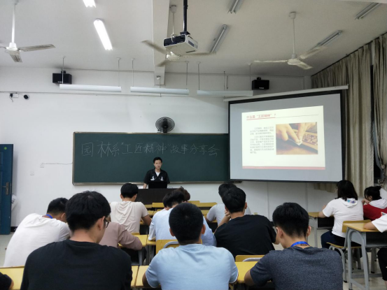 “讲工匠故事,传工匠精神”,为了大力弘扬“工匠精神”,2018年6月5日晚上七点半,园林系于实训四402教室举办“工匠精神”故事分享会。参加此次分享会的有一年级各班班长、团支书、学习委员、组织委员和宣传委员,由两委会各部门的四位干部担任评委,为各班的演讲进行打分。