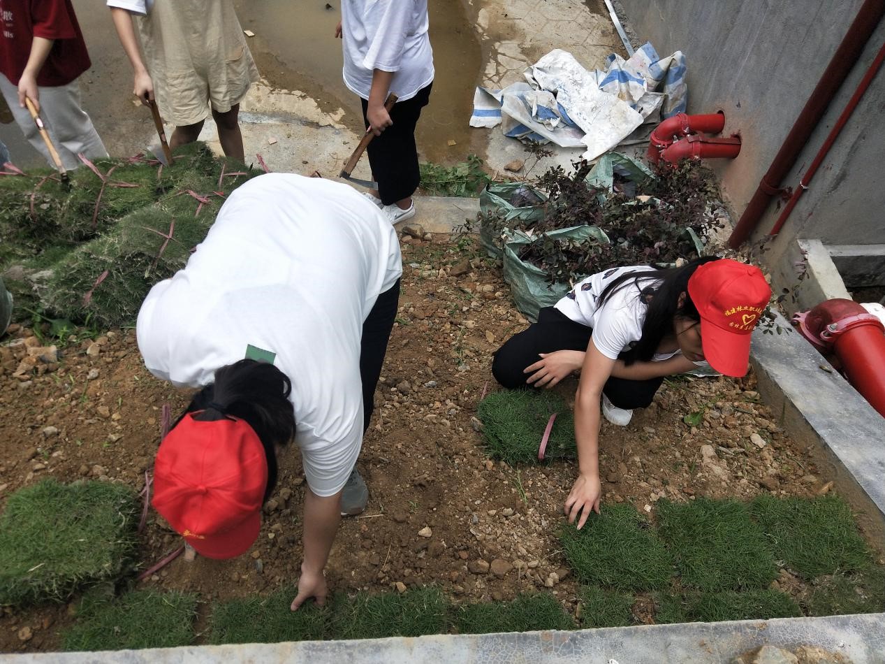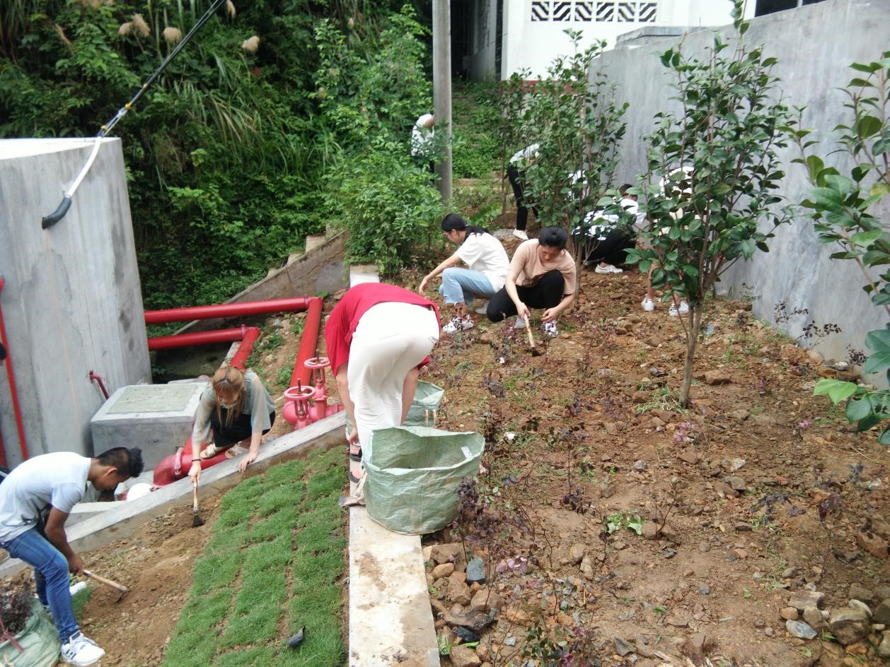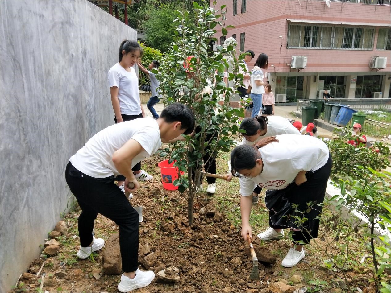 当天下午,志愿者们人手一把锄头,从学校前往福利院,利用所学的专业知识进行了分部树种种植。大家有序地分工合作,有的栽种山茶树,有的种植红花檵木,有的铺草皮。志愿者们通过生动形象的讲解向孩子们介绍树苗的栽培方式和保护树苗的常识。大家用锄头松动地面的土,然后再把树苗一颗颗填入土中,再进行充足的灌溉,并且告诉孩子们树苗的成长需要如何培养,希望孩子们能陪着树苗一起长大。今后的日子里,由小树苗陪着孩子们一起茁壮成长,这也是一件值得纪念的事,同时告诉孩子们,保护生命、爱护环境人人有责。