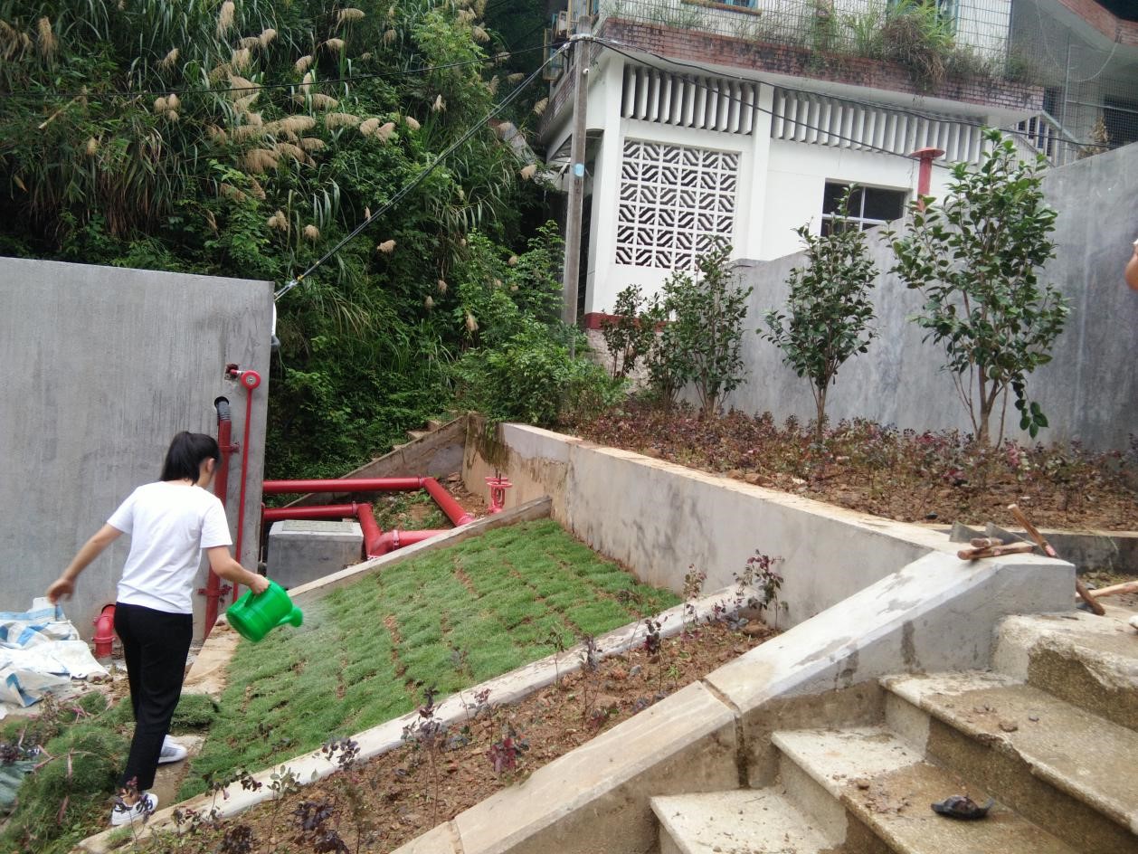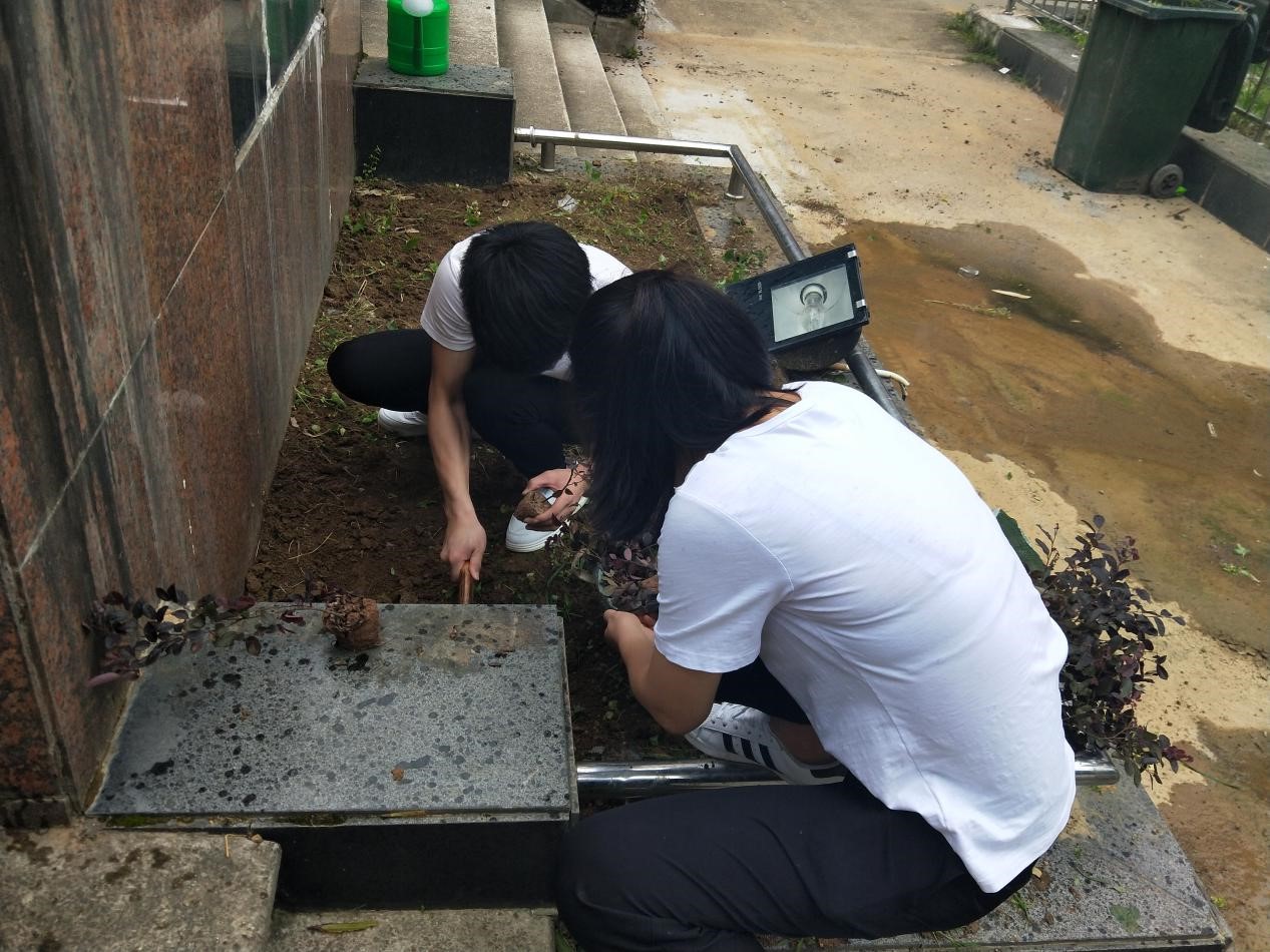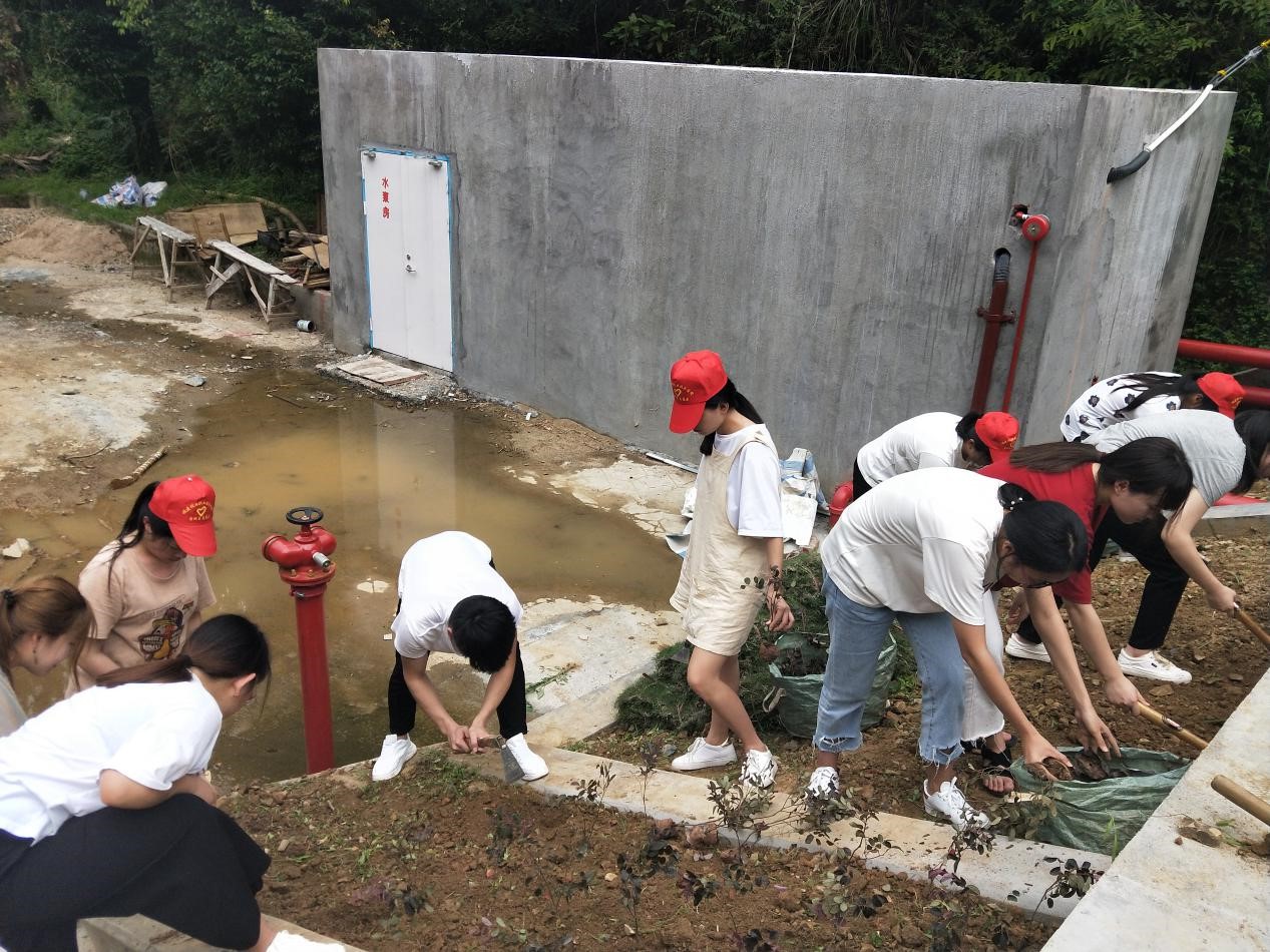 当天下午,志愿者们人手一把锄头,从学校前往福利院,利用所学的专业知识进行了分部树种种植。大家有序地分工合作,有的栽种山茶树,有的种植红花檵木,有的铺草皮。志愿者们通过生动形象的讲解向孩子们介绍树苗的栽培方式和保护树苗的常识。大家用锄头松动地面的土,然后再把树苗一颗颗填入土中,再进行充足的灌溉,并且告诉孩子们树苗的成长需要如何培养,希望孩子们能陪着树苗一起长大。今后的日子里,由小树苗陪着孩子们一起茁壮成长,这也是一件值得纪念的事,同时告诉孩子们,保护生命、爱护环境人人有责。