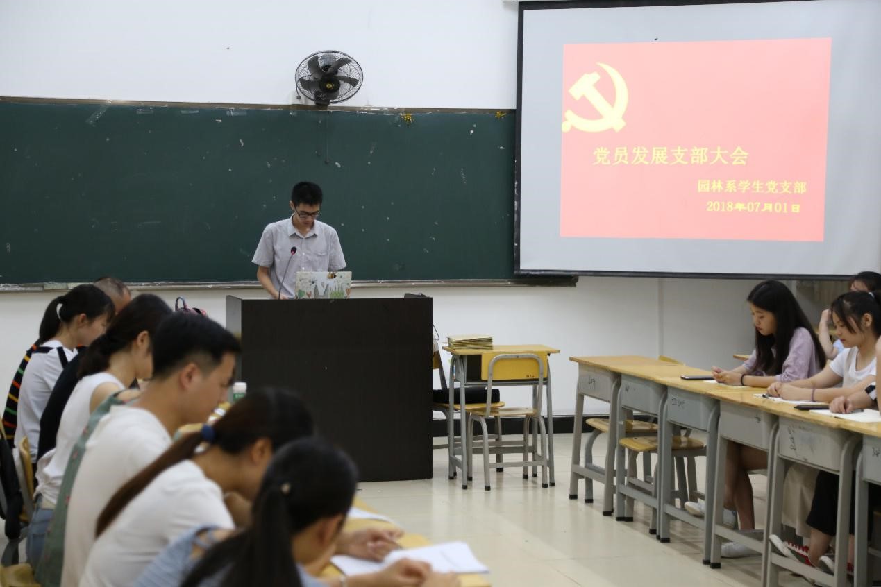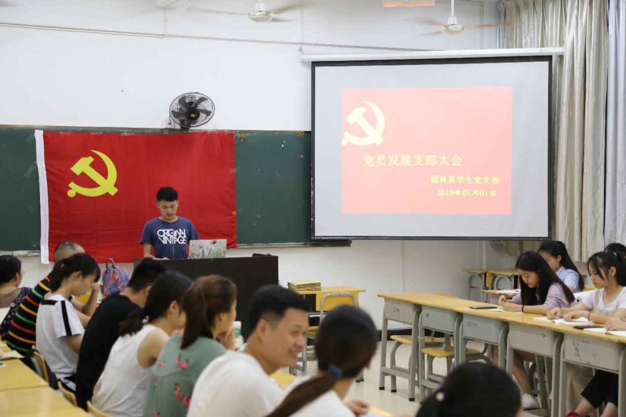 2018年7月1日,迎来了中国共产党建党97周年。晚上7点半,园林系学生党支部于实训四305教室举行了党员发展支部大会暨主题党日活动,分别由党支部组织委员吴锦鸿老师和党支部书记陈剑勇老师主持。