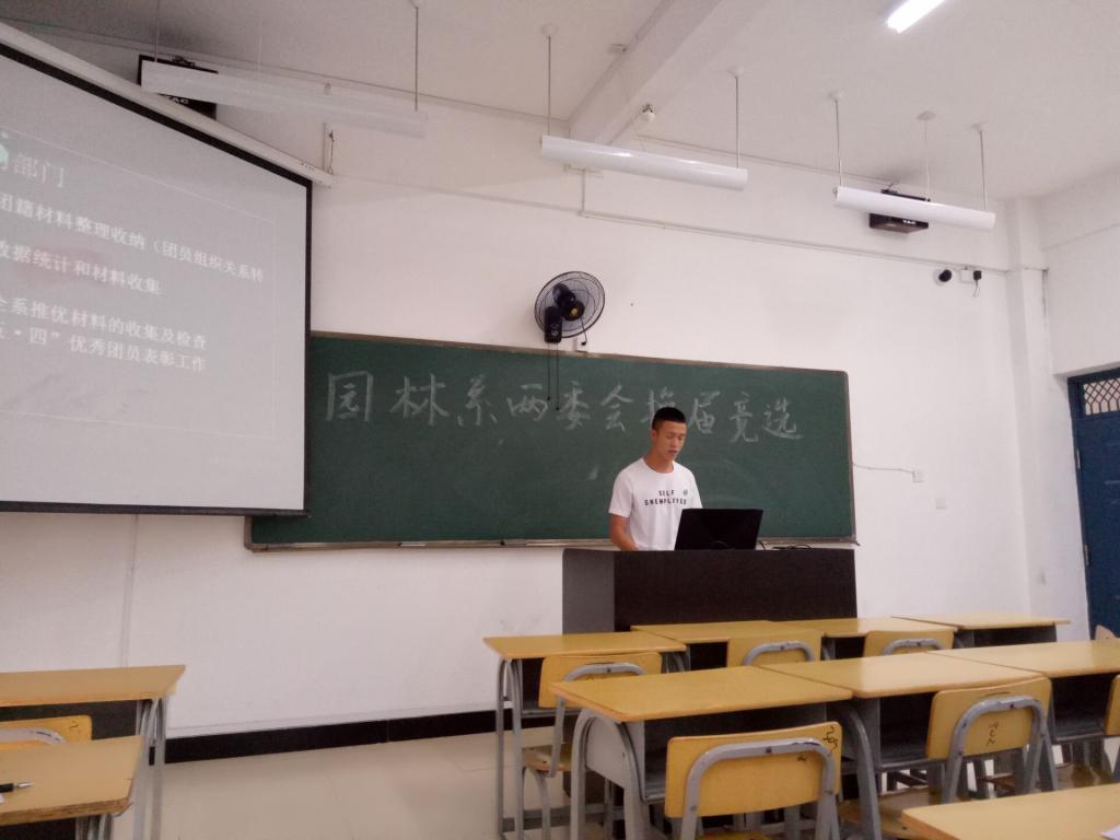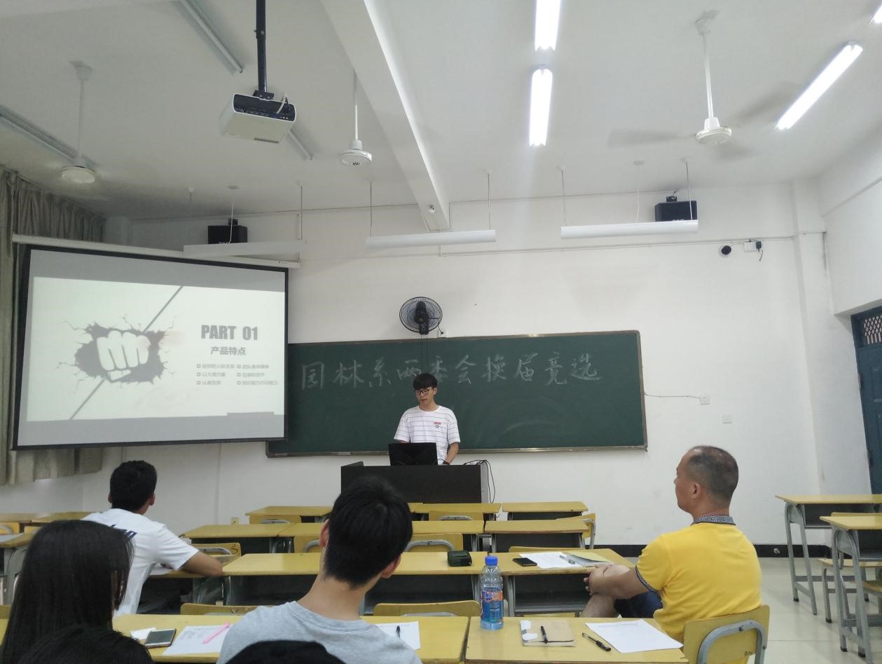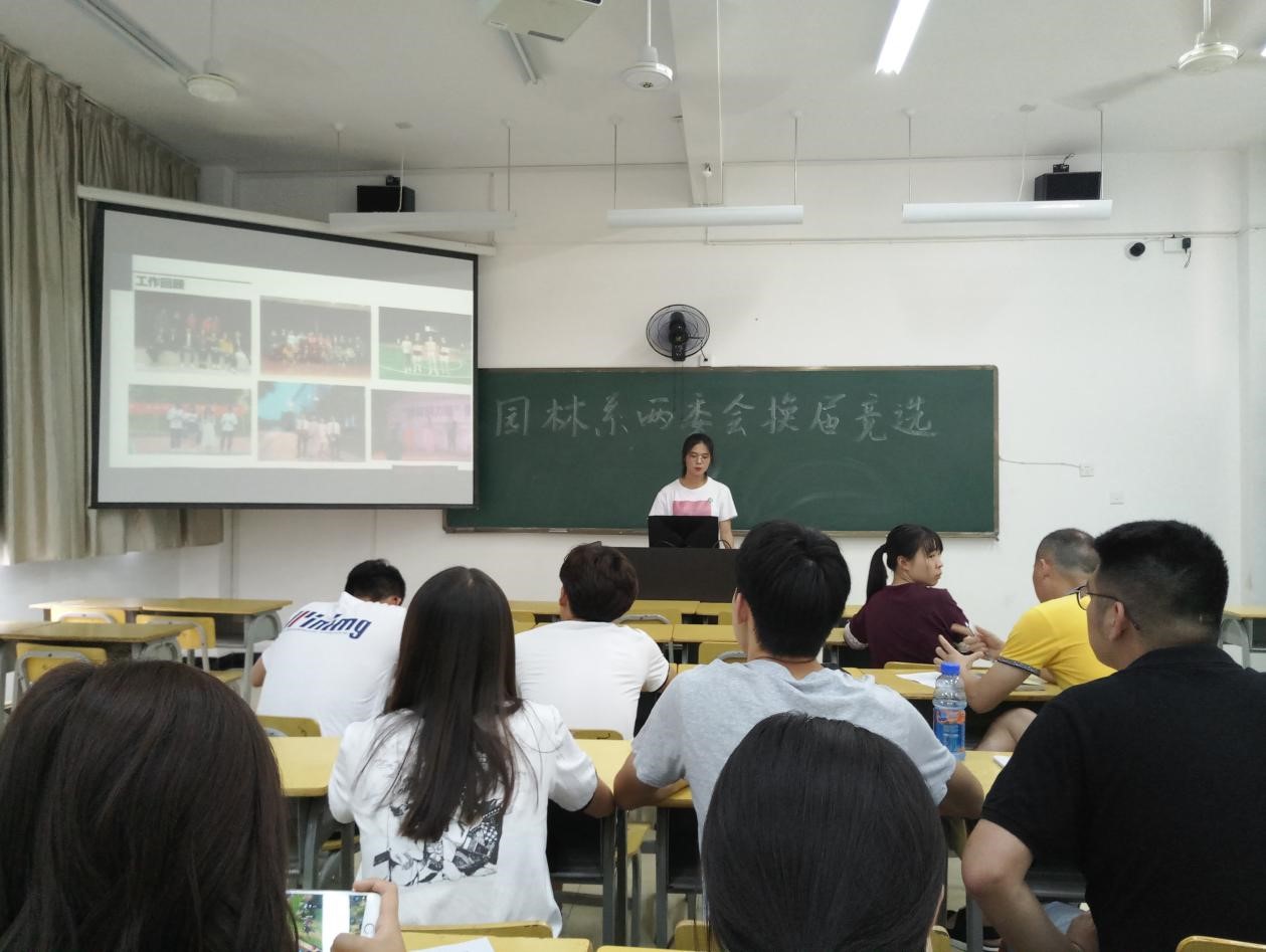 2018年7月5日下午14点,园林系两委会于实训四301教室举行新一届两委会干部换届竞选大会。参加此次竞选的是两委会各部门后备干部,由陈剑勇书记、孙钰老师、两委会主席团以及各部门干部组成评审团。