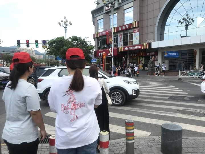 虽然天气很闷热,但是志愿者们依然站在各自的位置上,向有困难的群众伸出援手,碰到行人闯红灯过马路,志愿者都会上前制止,引导市民文明出行,纠正各种不文明出行习惯。志愿者用自己的实际行动维持着交通秩序,疏导着路口,为城市的文明形象增光添彩。