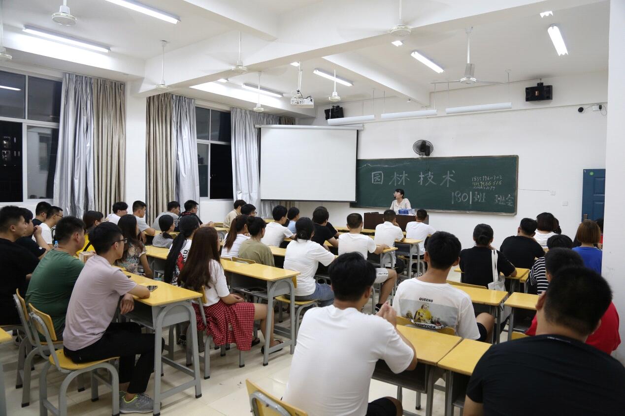 我系于2018年9月6日晚上6点30分及9点在实训四6楼教室开展新生入学主题班会,主持人为新生班级辅导员和辅导员助理,全体2018级园林系新生参加此次班会。