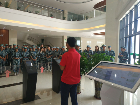 在结束早上的军训后,园林系的新生们于上午11点来到了新建好的图书馆门口站好队列,在讲解员和助导的带领下,一个班一个班井然有序的进入馆内逐一参观各层各室。左侧图书馆大门一入口,引入眼帘的就是展示屏、自动借还机和存取物品柜,方便师生们借阅图书还有助于了解图书馆的的布局。图书馆共有四层,每层都对图书进行了分类,让同学们在借阅图书时更加快捷和精准。通过讲解,让新生们对图书馆每层的特色以及注意事项都有了了解,同时也让同学们感受到了学院图书馆的馆藏丰富。