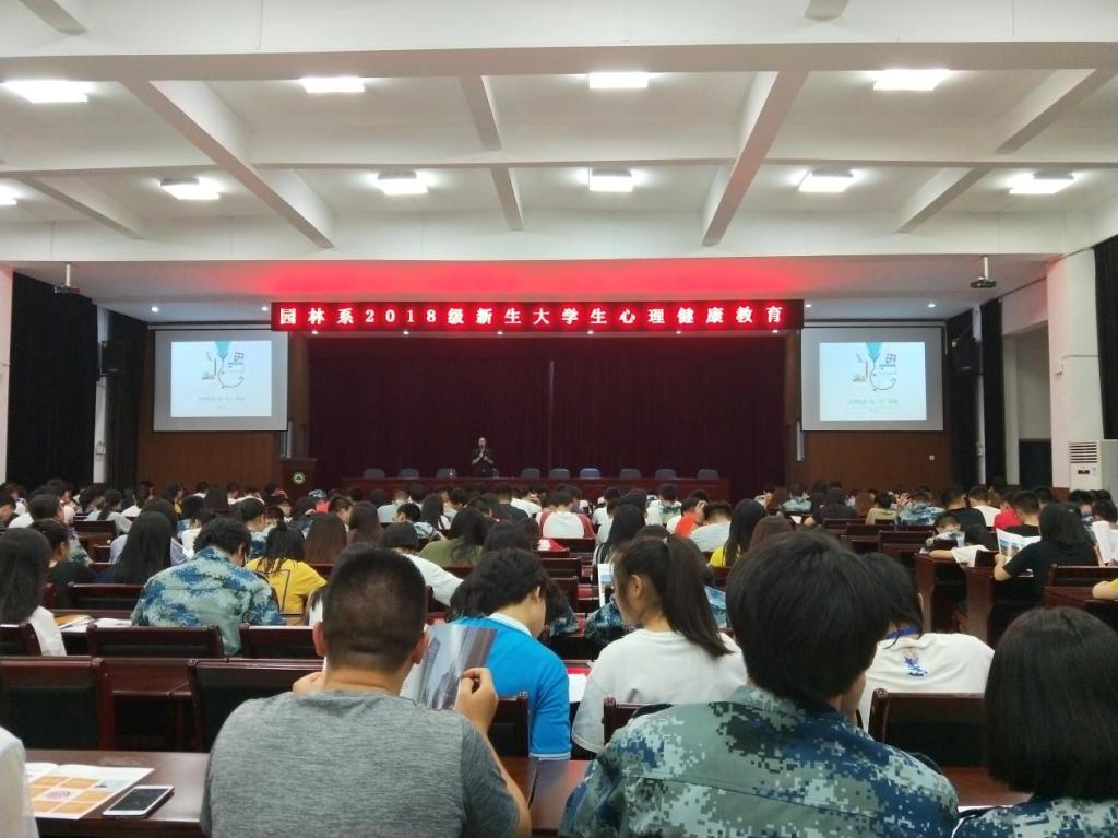 为了进一步加强我系新生管理工作和心理健康教育工作,2018年9月12日晚上7点,园林系于江南校区礼堂举办了大学生心理健康教育暨新生入馆培训讲座。此次讲座由学生处心理咨询中心陈红英老师和图书馆管理员张思梦老师担任主讲人,园林系辅导员吴锦鸿老师担任主持人,参加此次讲座的有园林系2018级新生。