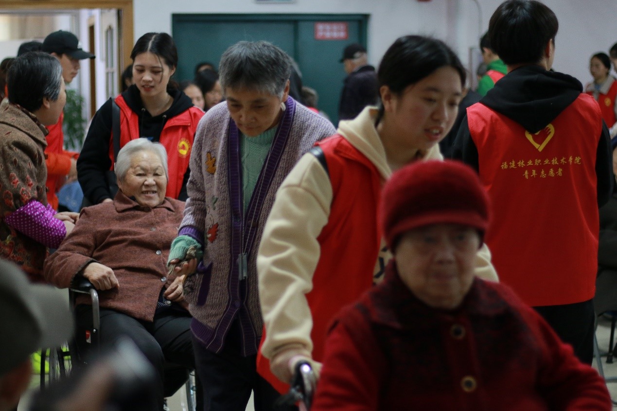 进入护理院后,护理院的负责人先向大家讲解今天的负责内容与注意事项,了解之后,志愿者们分成四个小组,在负责人的带领下,趁着老人的休息时间分发礼物和邀请老人们来看表演。随后,演出开始,精彩的歌舞、好看的相声让老人们掌声连连。在演出间隙,志愿者们还为老人们提供美味的点心,细心地向老人们讲解节目内容。下午16点30分,表演结束,志愿者们不舍地送老人们回到所住楼层,并向他们道别。
