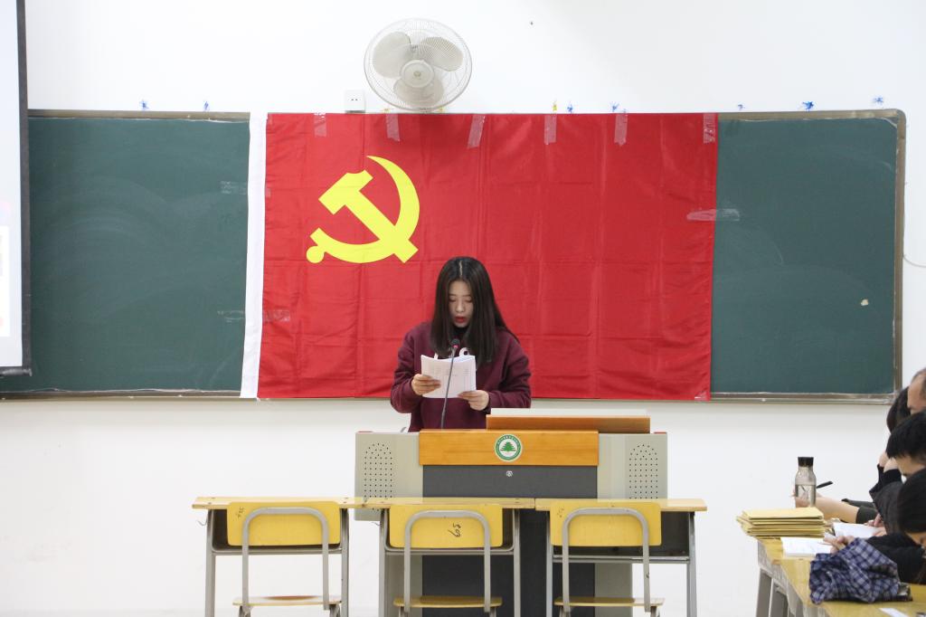 2018年12月27日晚上7点整,园林系学生党支部在实训四505教室召开预备党员发展大会,讨论发展预备党员。参加此次大会的有学生党支部全体师生党员、积极分子,大会由党支部组织委员吴锦鸿主持。