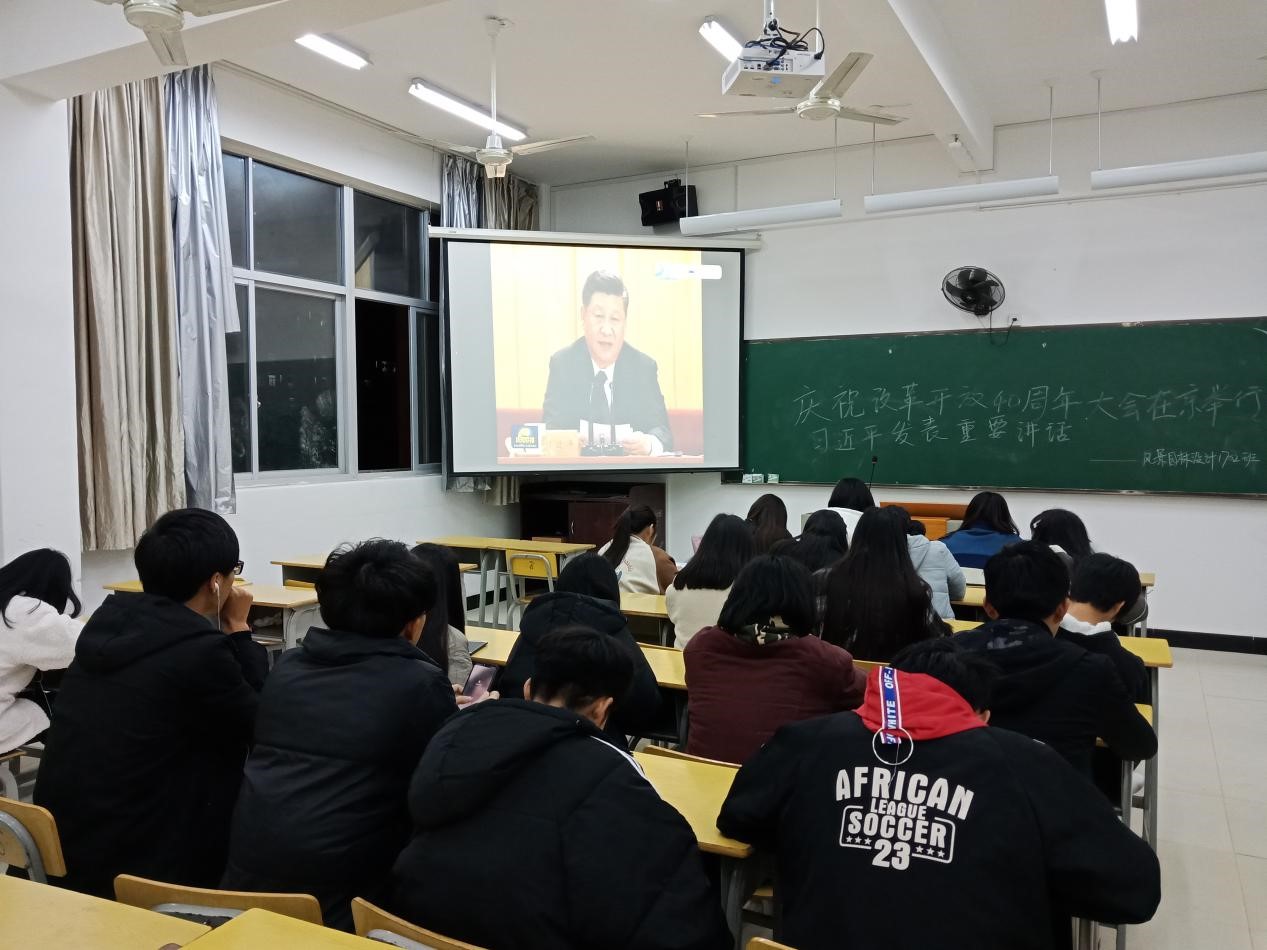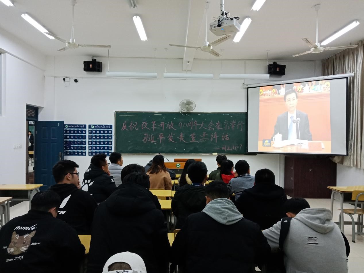 2018年12月28日晚上7点整,园林系学习部组织各班级召开学习“庆祝改革开放40周年大会”精神主题班会。班会由各班学习委员主持。