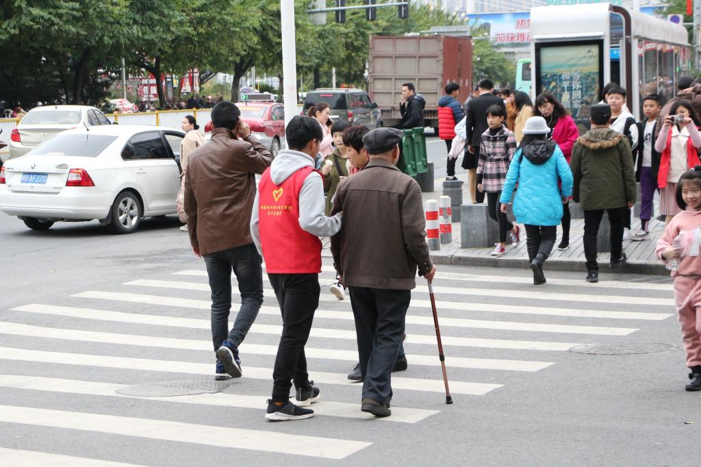遵守交通规则、尊老爱幼是优秀的美德和行为规范。在这寒冷的冬天,志愿者们按照安排分布人民路各个人流量大的路口,一抹抹红色的身影显得格外显眼。志愿者们通过交警同志对交通安全知识的讲解,了解了活动的注意事项,及时劝阻和教育违章者,提醒路人遵守交通规则,注意安全,行人们都有序地等候绿灯;在绿灯亮起后,一些行走不便的老人也在志愿者的搀扶下安全通过斑马线。这次的活动不仅锻炼了志愿者们,也增强了人们尊老爱幼、遵守交通规则的意识,让广大市民从自身做起,搀扶老幼过斑马线、不随意穿过马路、车辆礼让行人,共同打造高素质的美丽城市。