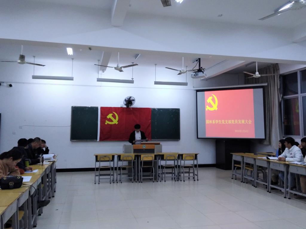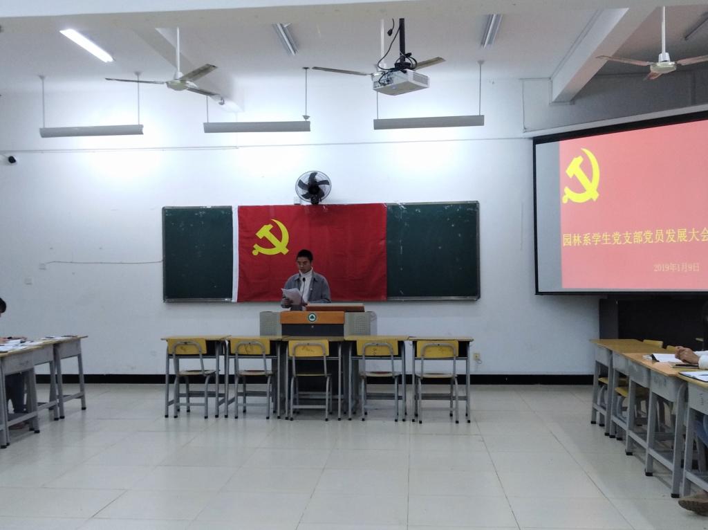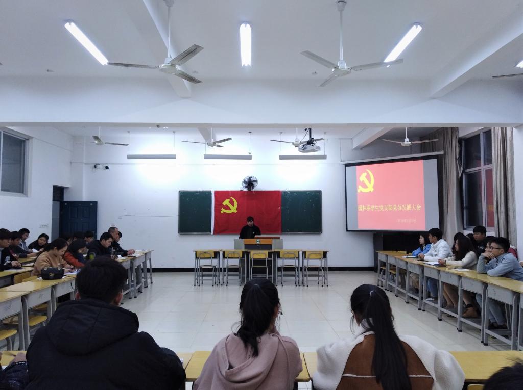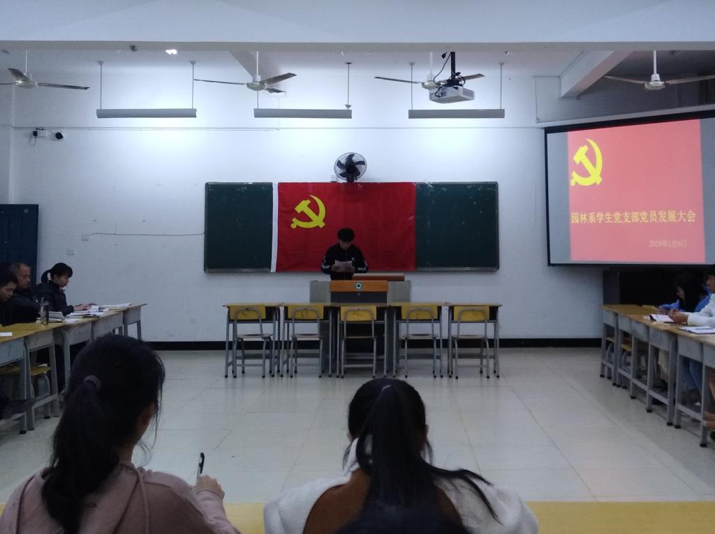 2019年1月9日19点整,园林系学生党支部在实训四410召开党员发展大会,讨论发展预备党员。参加此次大会的有学生党支部全体师生党员、积极分子。大会由支部组织委员吴锦鸿主持。