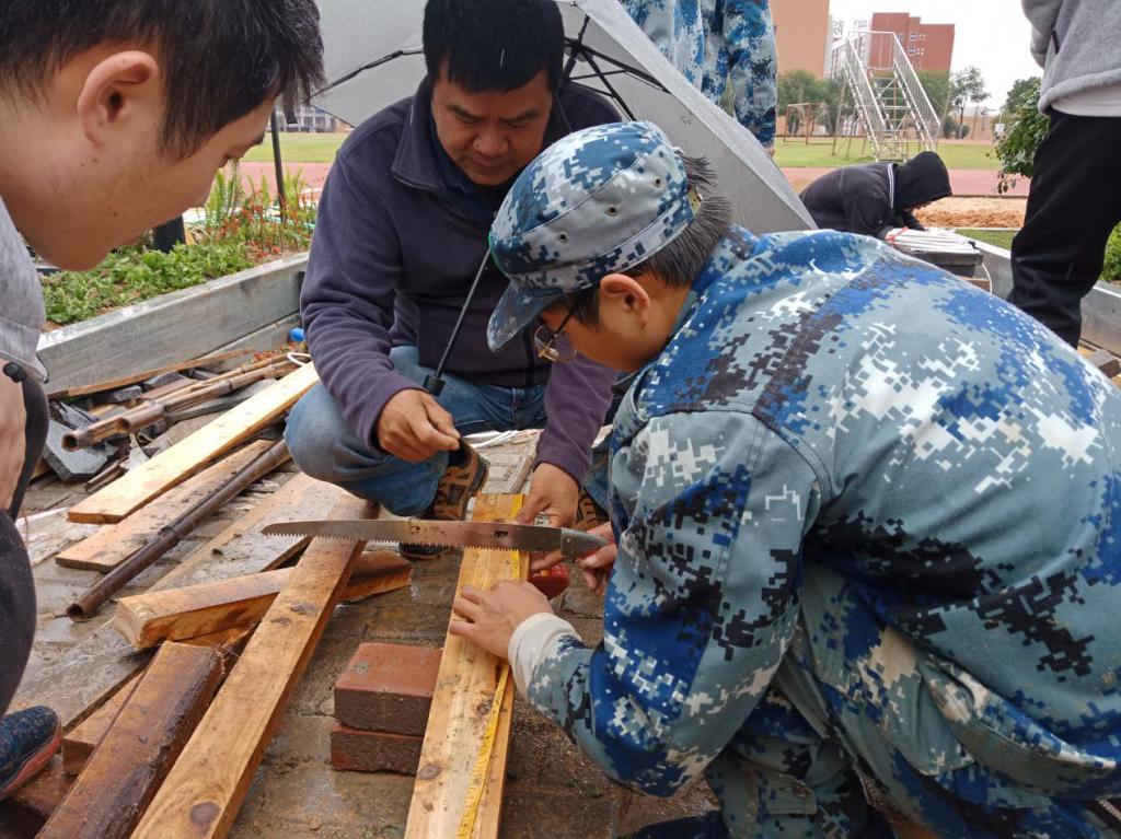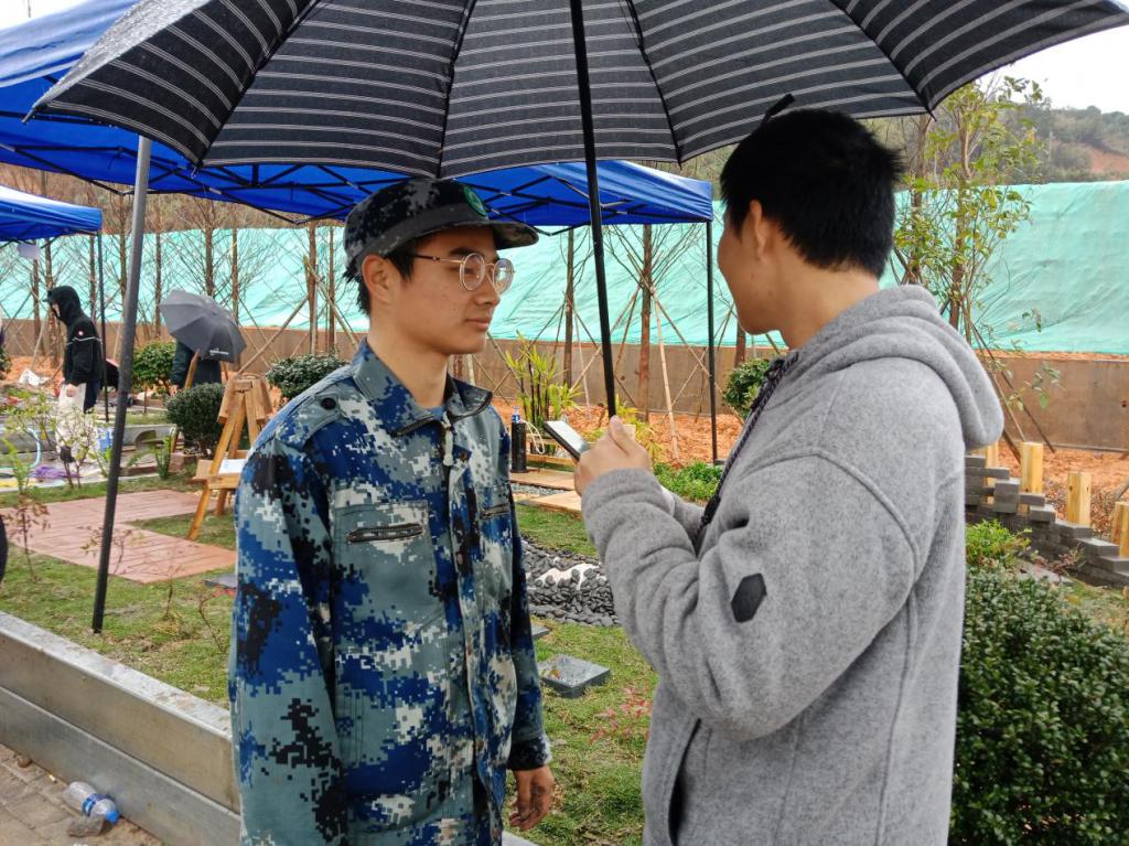 春雨依旧绵绵,而同学们还在雨中继续忙碌着,今天园林系记者站采访到了来自园林技术1513(五)班的刘科宏同学。当看到刘科宏同学时,他所在小组的“创意花园”施工基本完工了,正在对作品进行最后的完善,记者站同学了解到,大家大多都是忙到凌晨才收工。当提到本次竞赛的收获时,刘科宏同学说,“最大的收获是学习,大家凝聚在一起,把个体凝固成一个团队,这个团队在老师的指导下形成一股强大的力量,最后完成了一个不错的作品。”