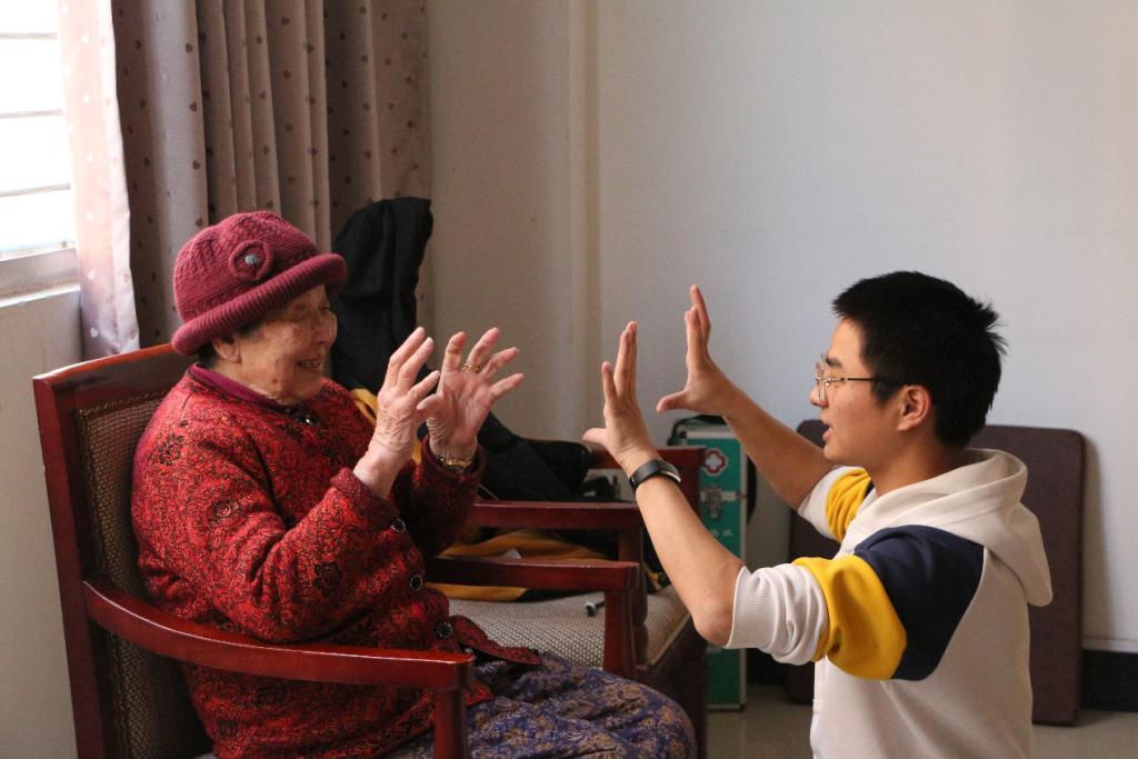进入护理院之后,志愿者们在护理院负责人的领导下,分为二组,其中一组的志愿者们帮老人们安装桌子,另一组志愿者则和老人们玩耍,陪老人们聊天、晒太阳。原本沉寂的气氛活跃了起来,欢声笑语充满了整个护理院。