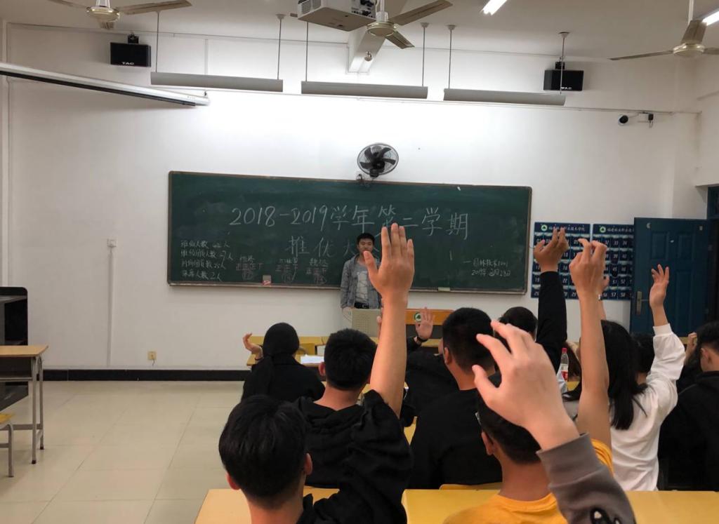 大会伊始,首先由各团支书介绍参加推优的条件。随后,推优候选人依次上台进行三分钟演讲。接着,由组织委员向在场的每位团员分发民主表决票进行投票表决。最后,由组织部和纪检部工作人员进行唱票和计票。