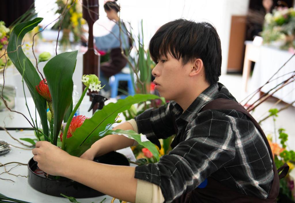 2019年福建省职业院校技能大赛(高职组)“艺术插花”赛项于2019年4月13日在福建林业职业学院江南校区如期举行。来自全省10所高校20支代表队的20位参赛选手同台竞技,赛场内花香四溢、春意盎然,气氛紧张而激烈。