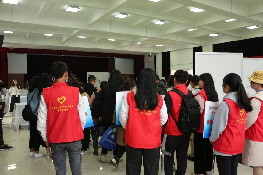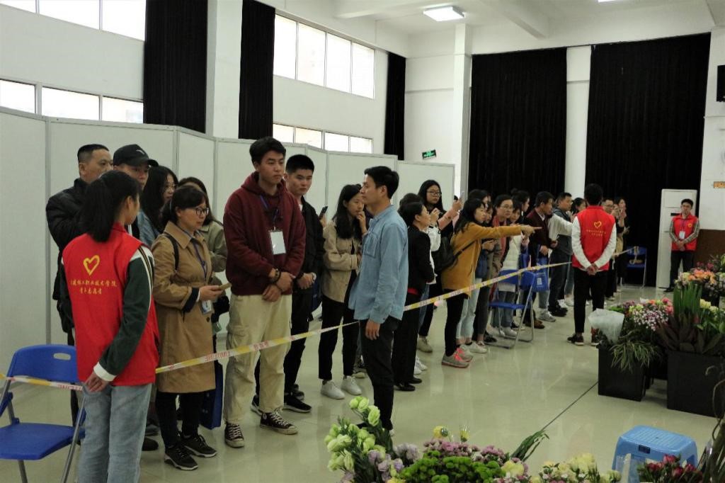 4月12日下午15时,各高职院校的比赛选手在党员志愿者们的引导下,有序前往江南校区礼堂熟悉比赛场地。