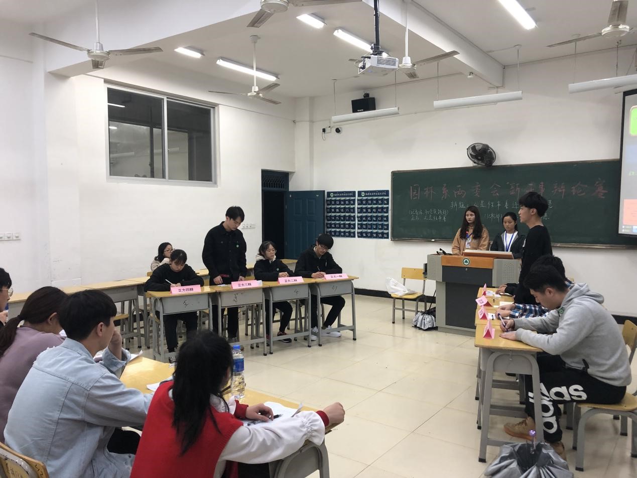 2019年4月3日,园林系2019年度新干事辩论赛决赛在实训四如期进行。经过一个月初赛、复赛、预决赛的激烈角逐后,共有4队组合脱颖而出,进入本次辩论赛决赛。本次辩论赛旨在加强学风建设,促进学风交流,丰富同学课余生活,活跃校园气氛,开拓同学思路,体现大学生风华正茂的精神状态。