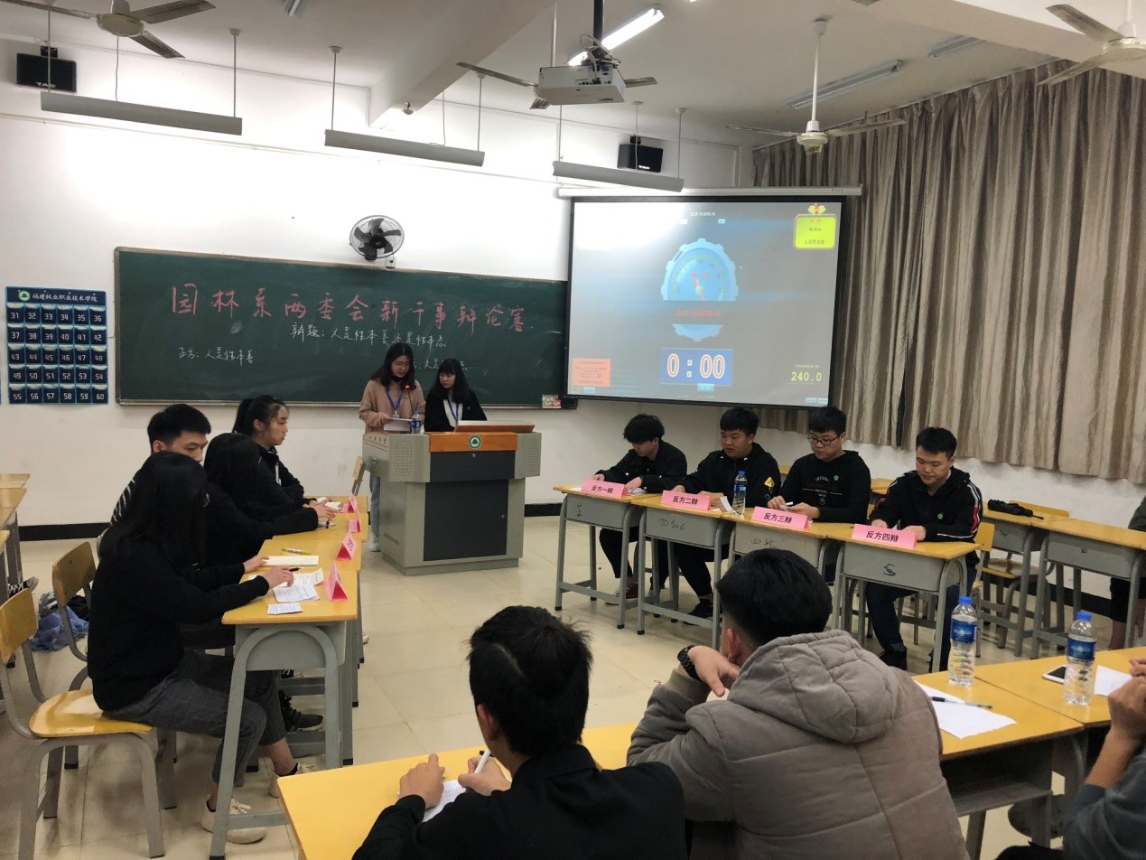 此次园林系部门新干事辩论赛圆满结束。通过此次比赛,帮助和引领了广大青年学生牢固树立正确的价值观和坚定的理想信念,充分展现大学生对世界观、人生观、价值观的深刻认识、深入思考、深度思辩,营造积极健康向上向善的浓厚氛围,进一步推进社会主义核心价值体系建设。
