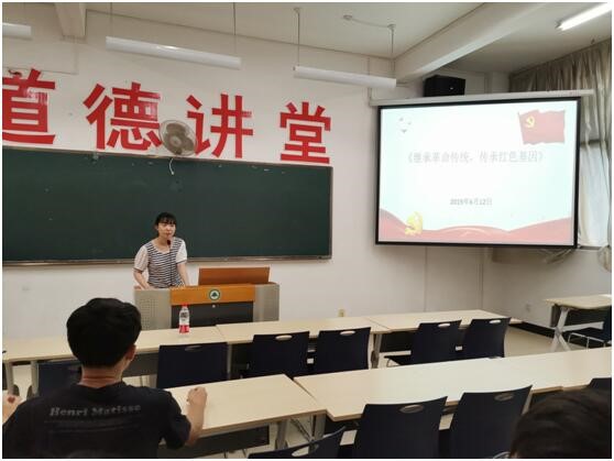 为庆祝中华人民共和国成立70周年,中国共产党成立98周年,2019年6月11-12日,园林系辅导员组织学生于实训四教室开展“继承革命传统,传承红色基因”主题班会。