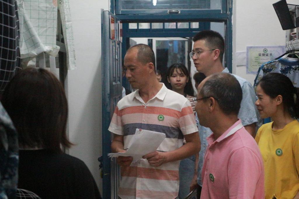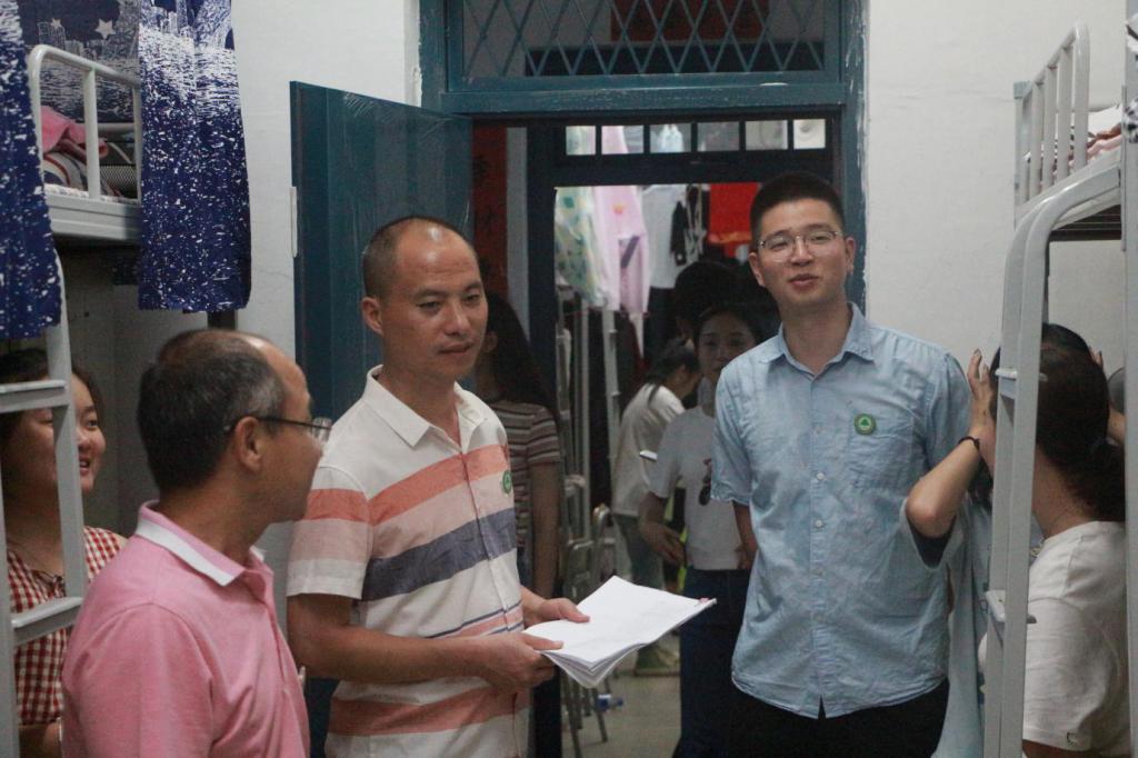 晚上8点,园林系系主任黄华明老师、系党总支副书记陈剑勇老师、系学生科科长吴旻老师、系教学管理科科长陈剑峰老师以及全体新生班辅导员一同走访我系新生宿舍。黄华明老师和蔼可亲幽默风趣,拉近了师生间的距离,给新生们送去了温情;陈剑勇老师询问同学们在新环境下的生活状态,同他们拉家常,叮嘱道军训时期条件艰苦应该照顾好自己。师生之间其乐融融,亲情般的关怀和温馨沁入每位同学的心中。