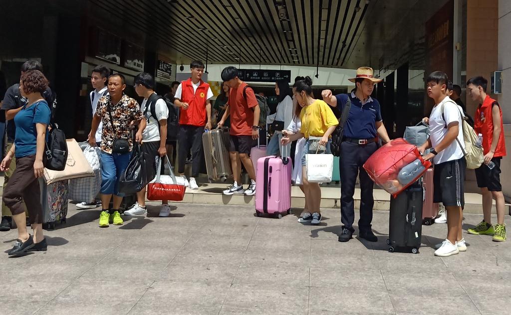 黄梓良老师和志愿者们在南平北站迎新接站